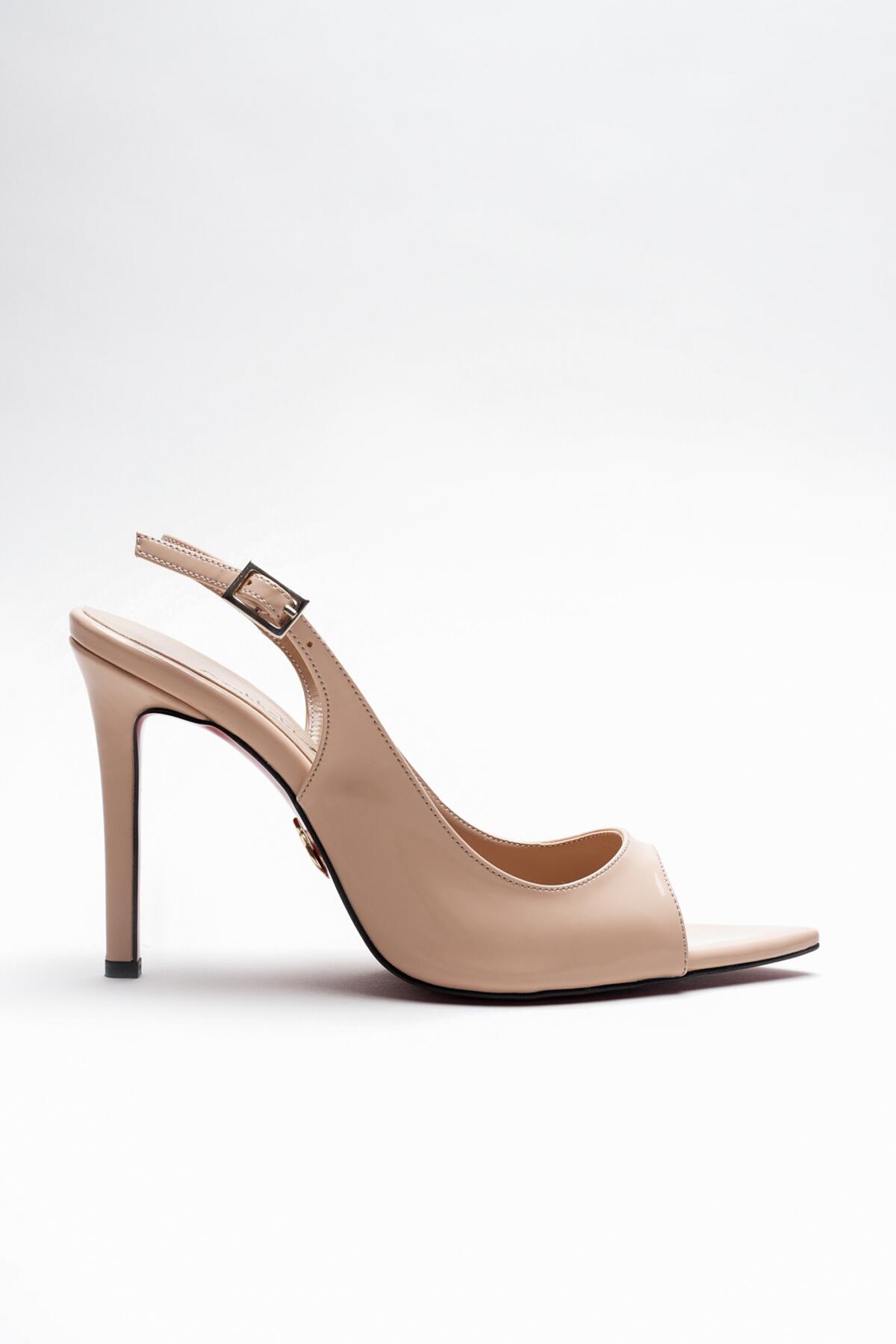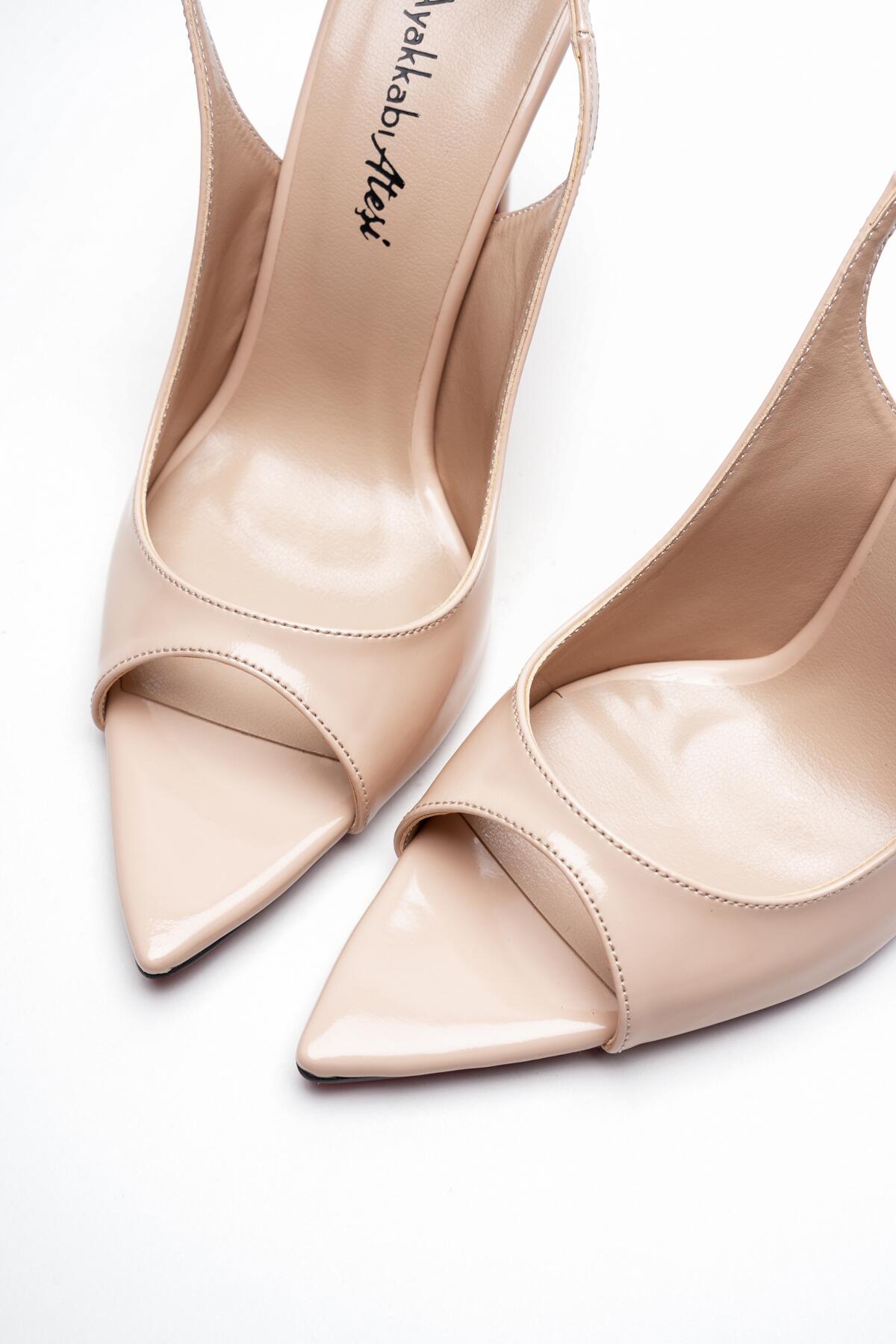 Kadın Çapraz Bantlı İnce Topuklu Ayakkabı Acare Nude Rugan