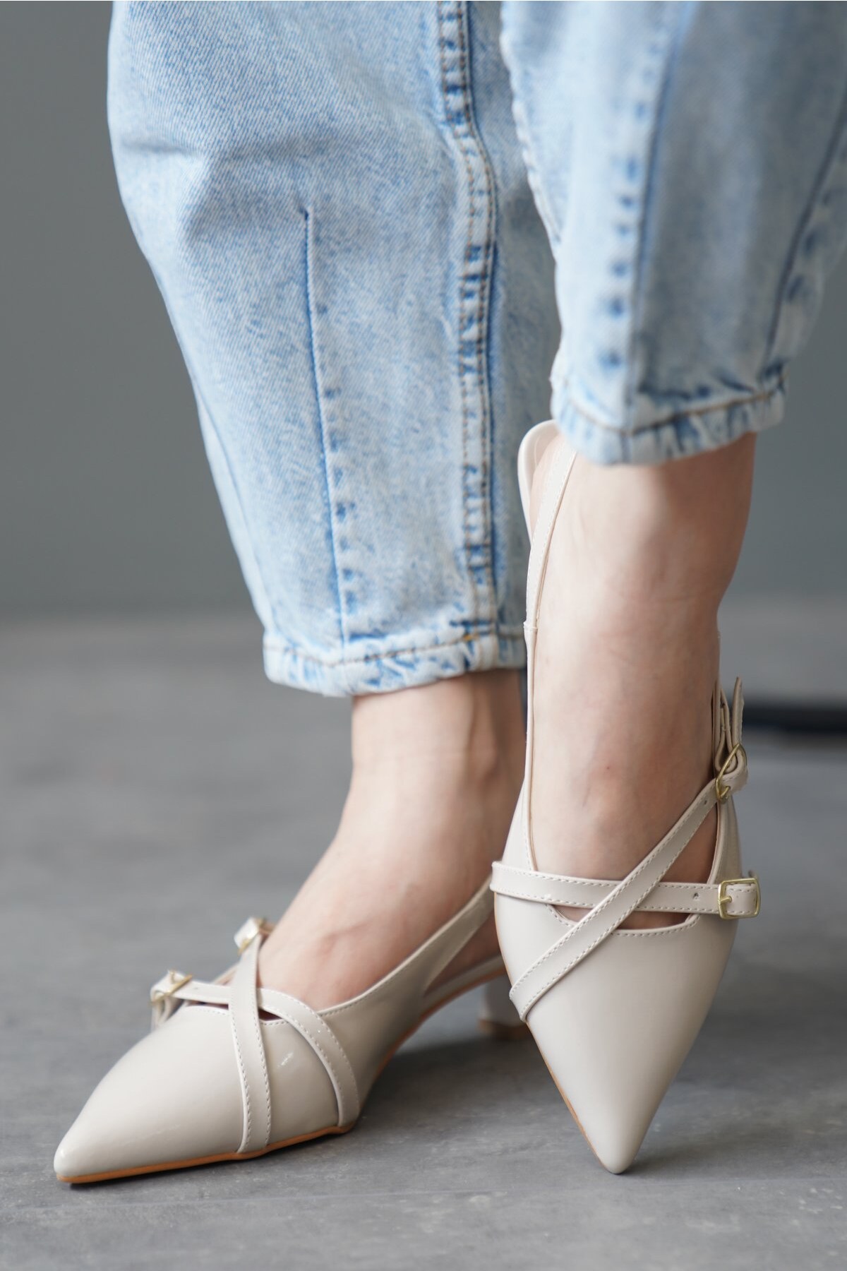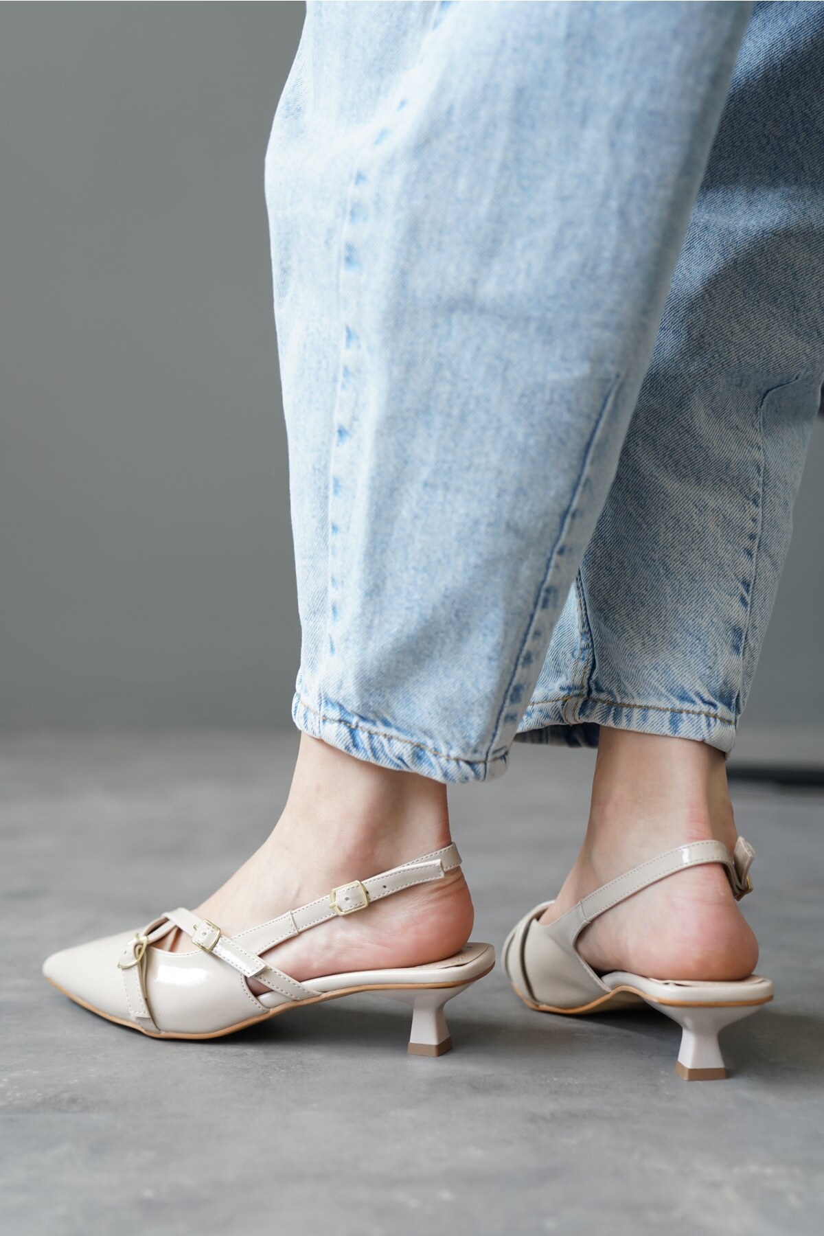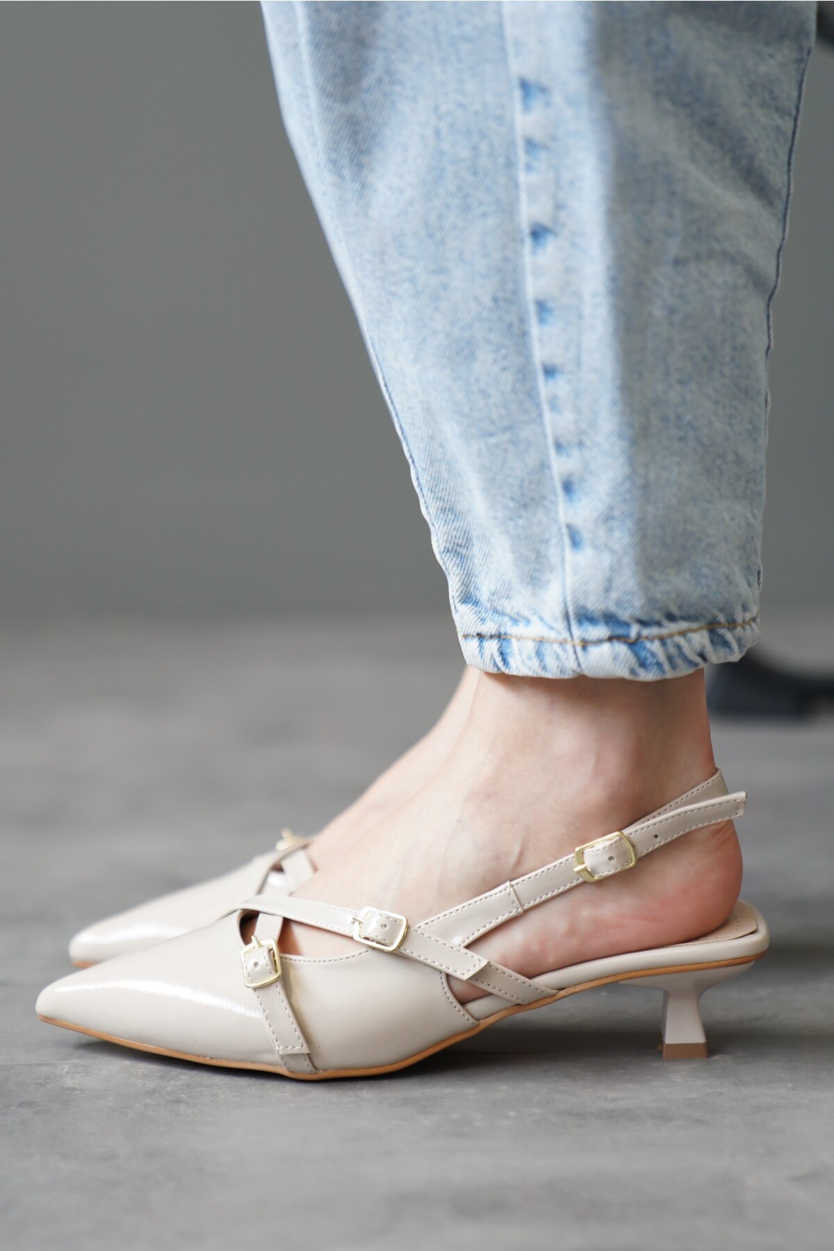 Kadın Çift Biyeli Mini Topuklu Ayakkabı Seeroi Bej
