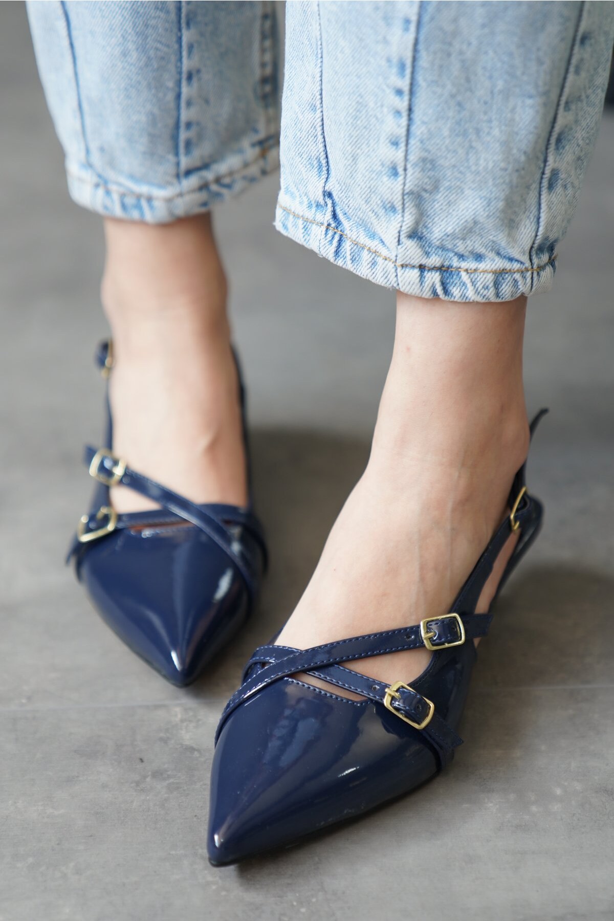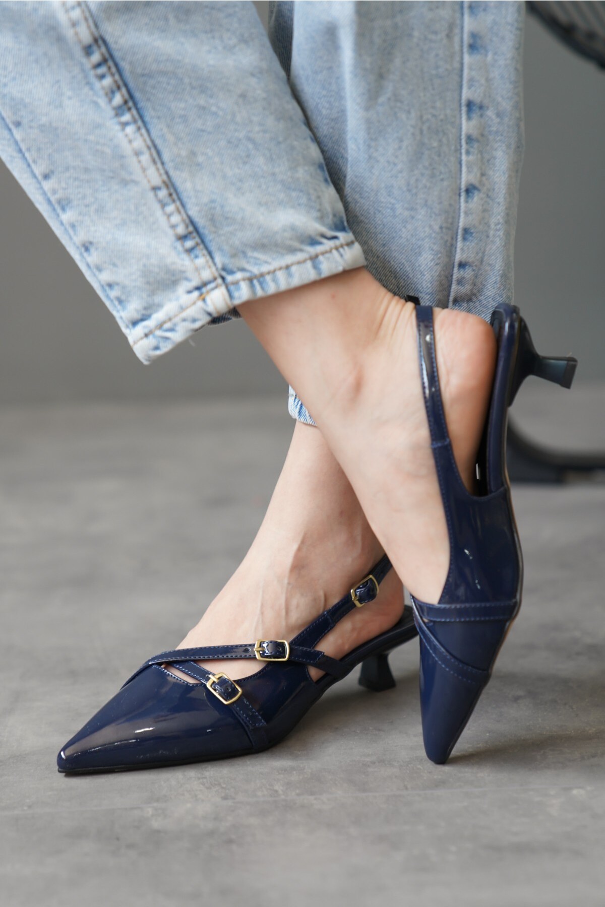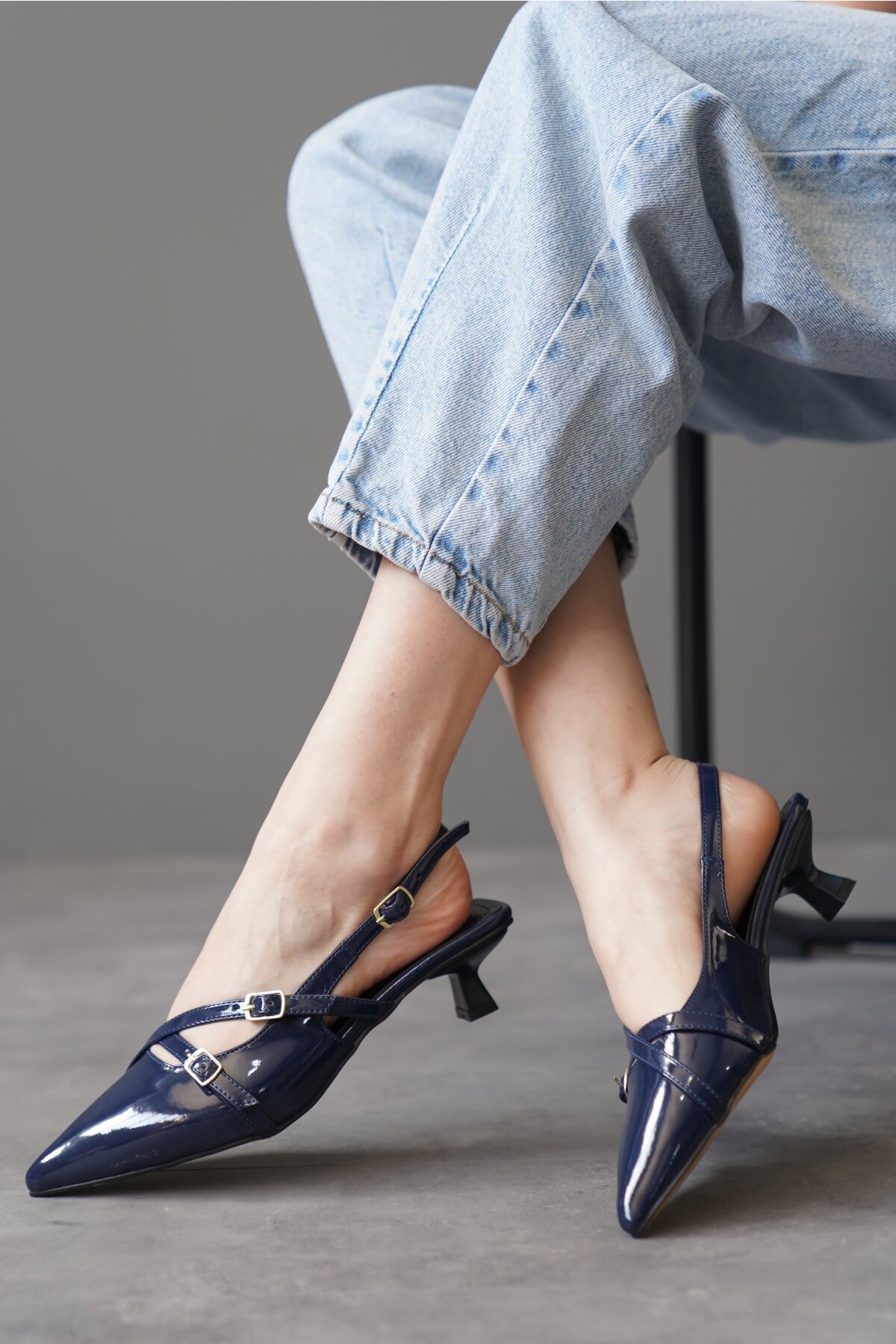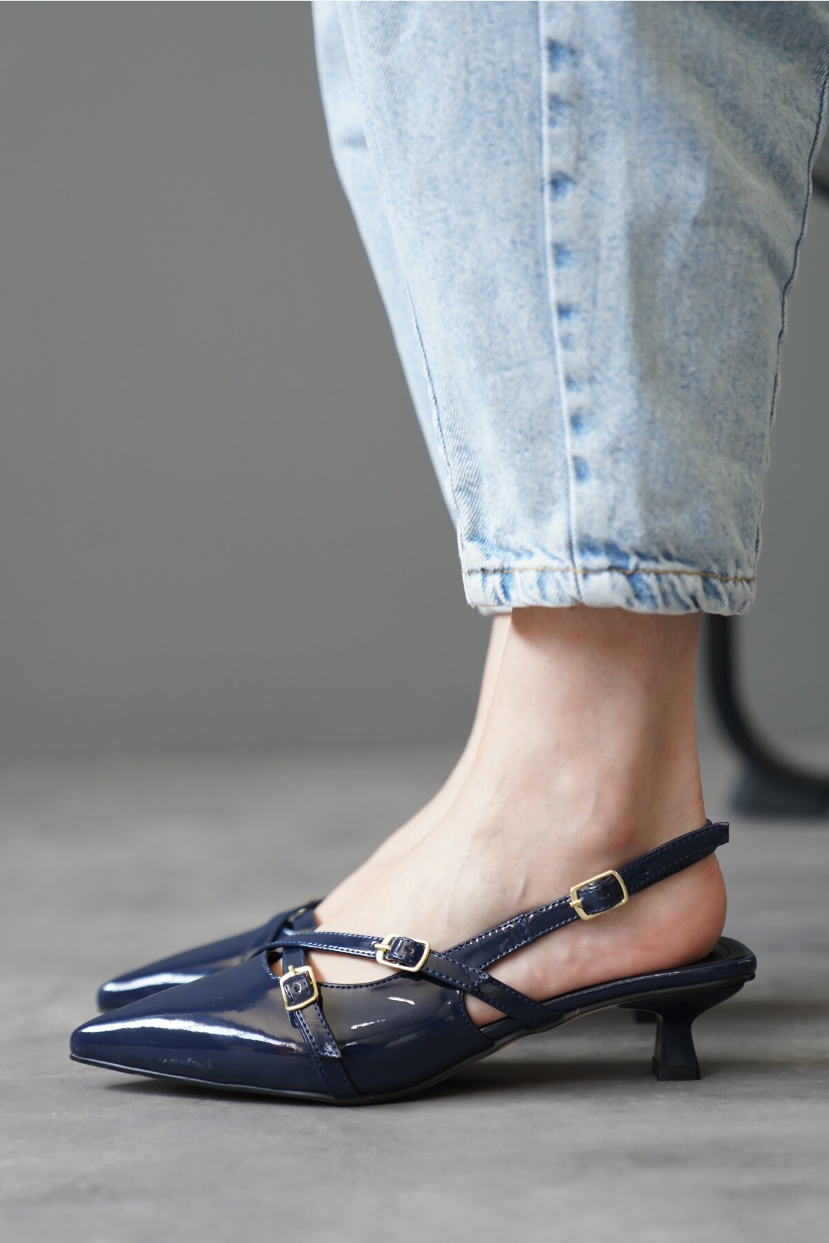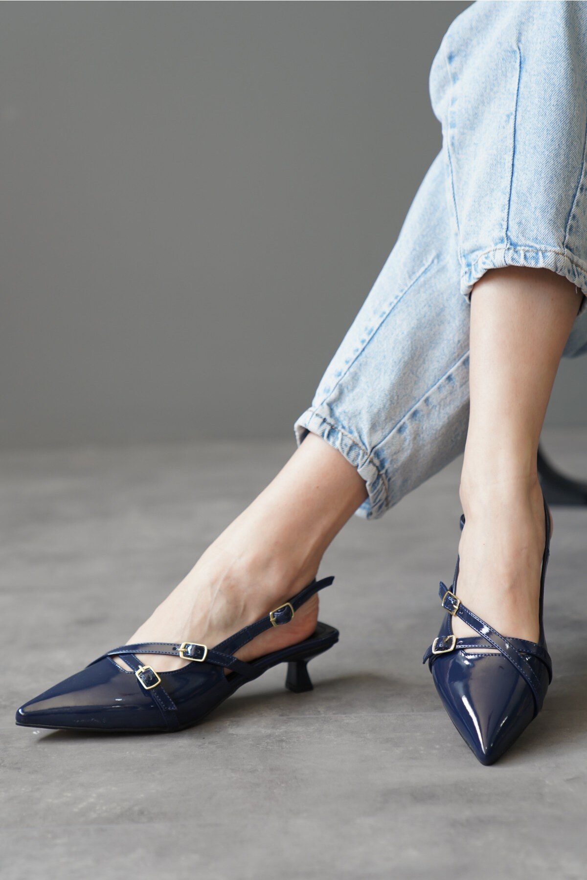 Kadın Çift Biyeli Mini Topuklu Ayakkabı Seeroi Lacivert