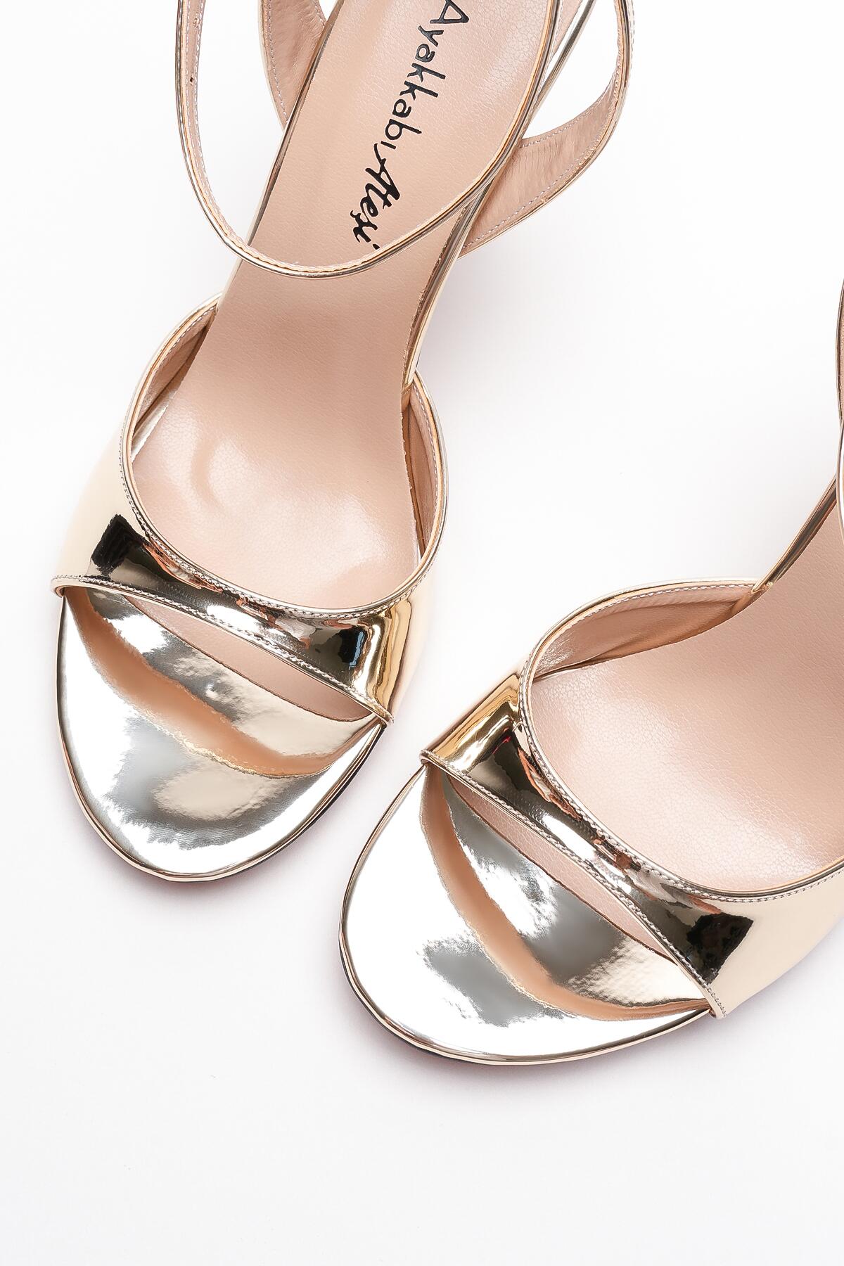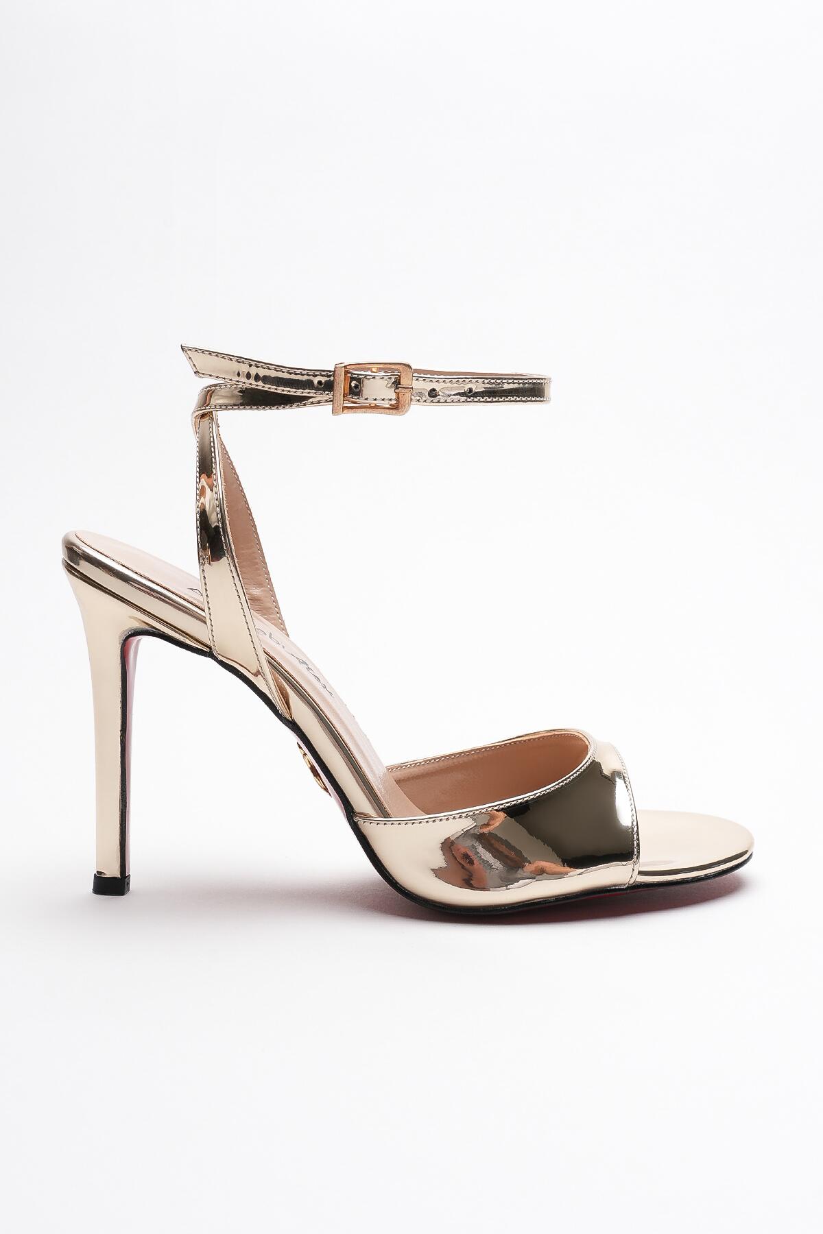 Kadın İnce Bant Arka Baretli Topuklu Ayakkabı Livora Altın Ayna