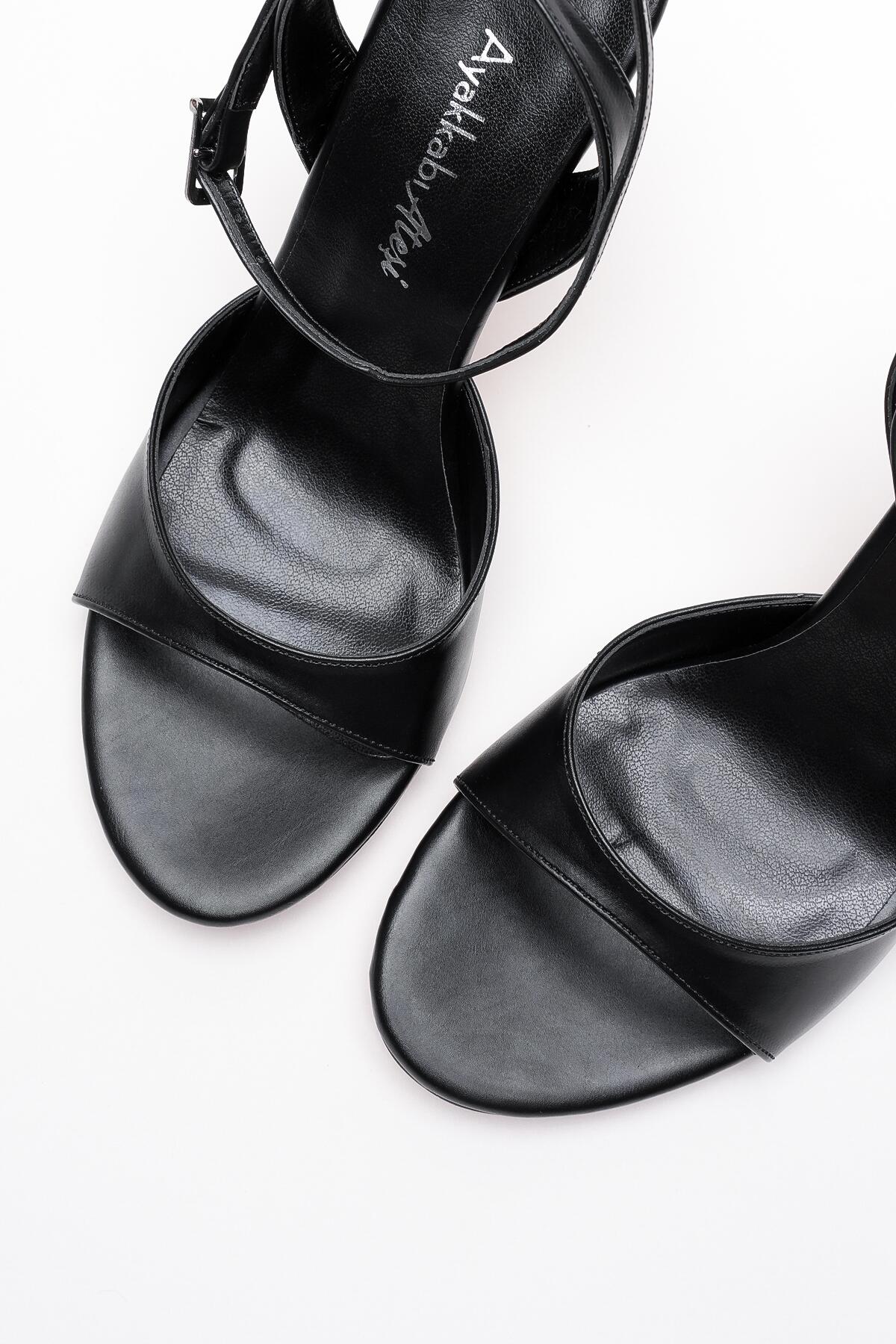 Kadın İnce Bant Arka Baretli Topuklu Ayakkabı Livora Siyah Cilt