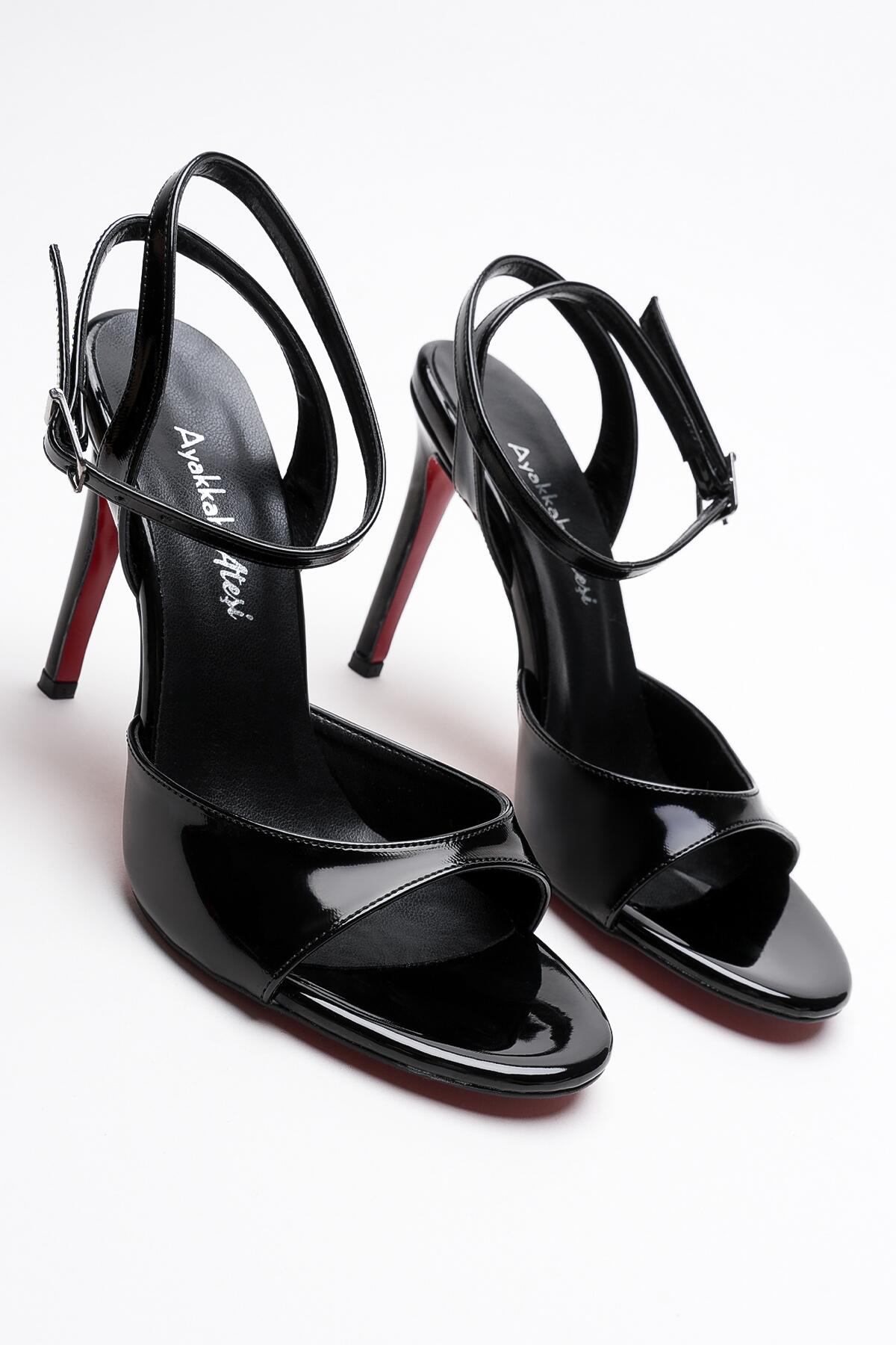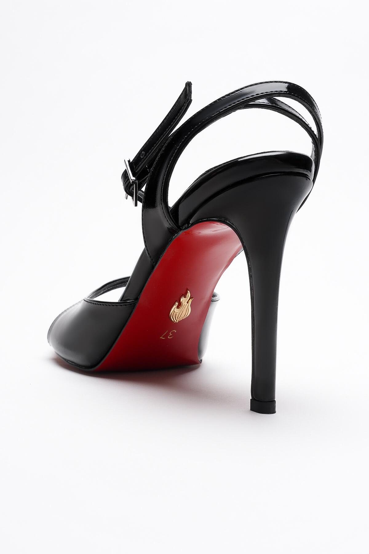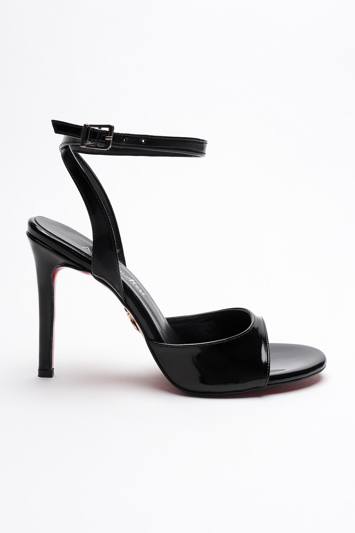 Kadın İnce Bant Arka Baretli Topuklu Ayakkabı Livora Siyah Rugan