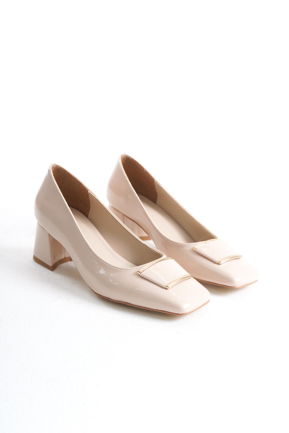 Kadın Kare Tokalı Kısa Topuklu Ayakkabı Missia Bej