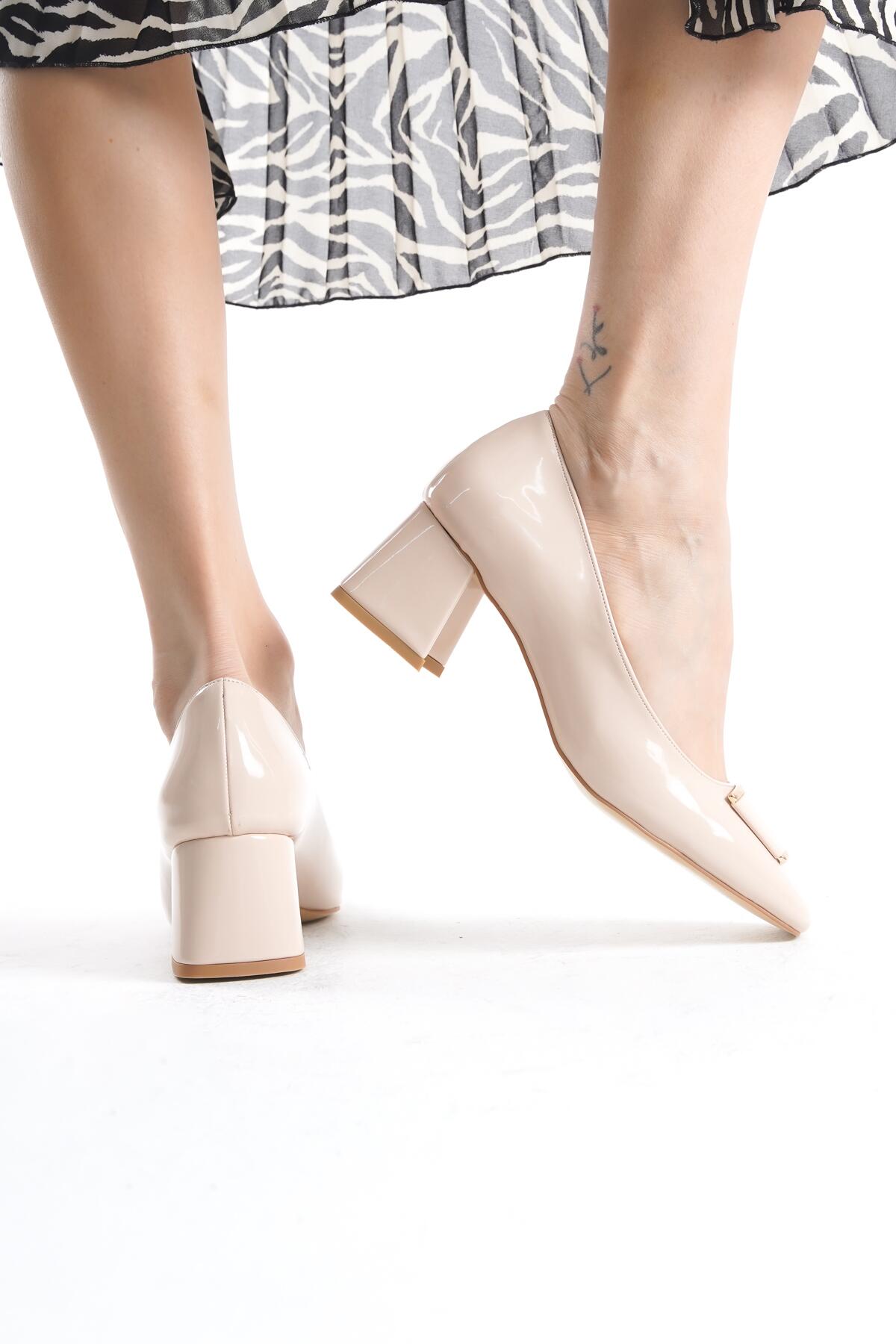Kadın Küt Burun Kısa Topuklu Ayakkabı Goriva