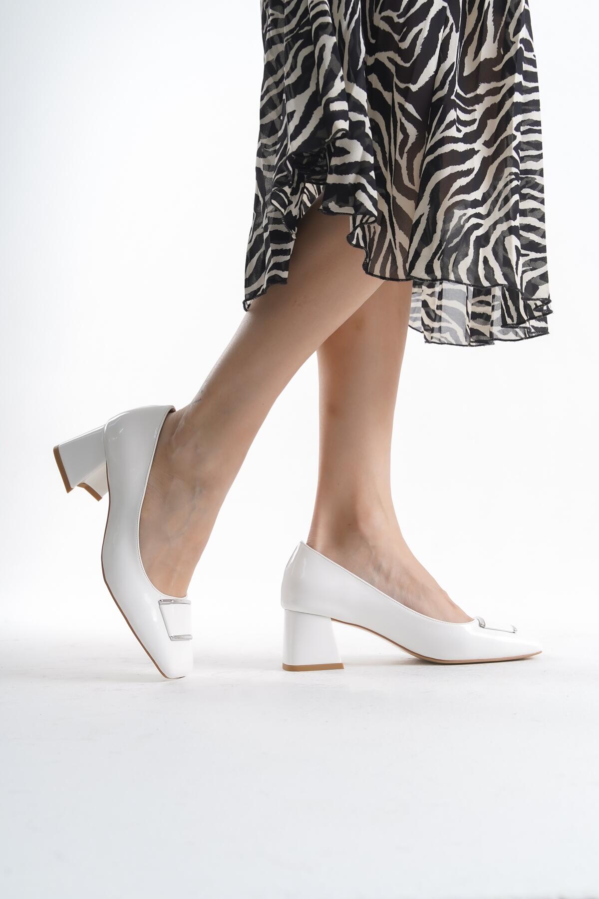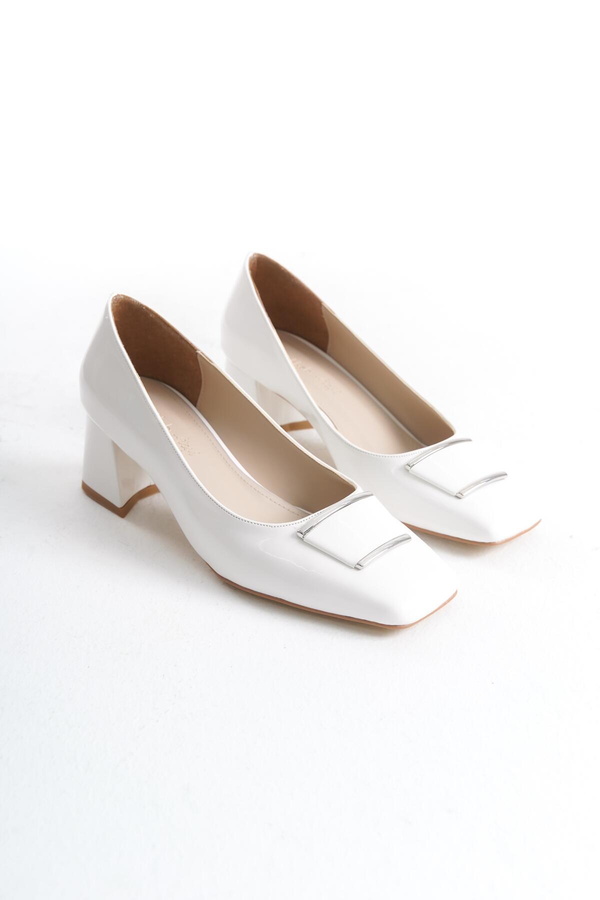 Kadın Kare Tokalı Kısa Topuklu Ayakkabı Missia Beyaz