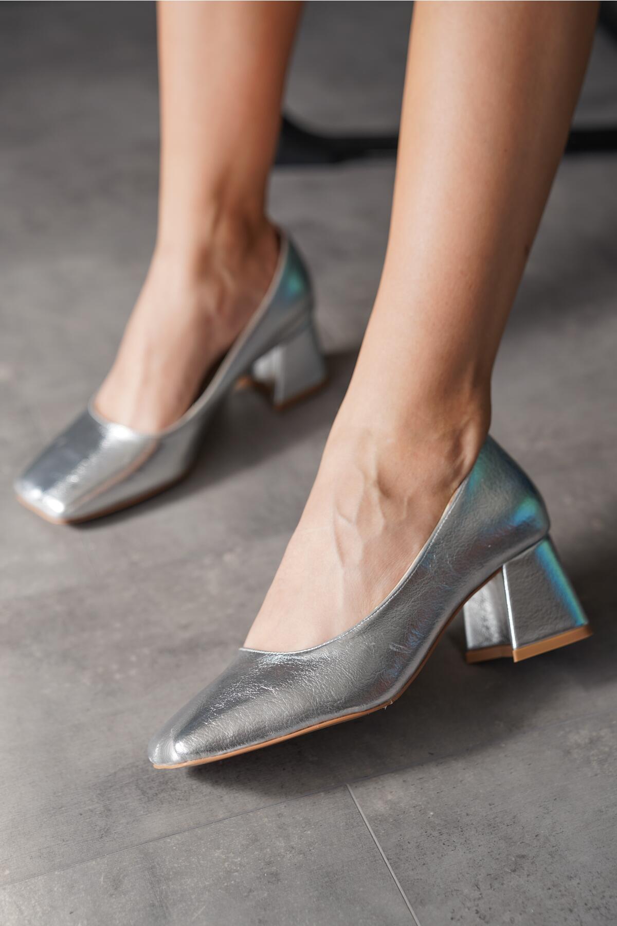 Kadın Kısa Topuklu Ayakkabı Livo Gümüş