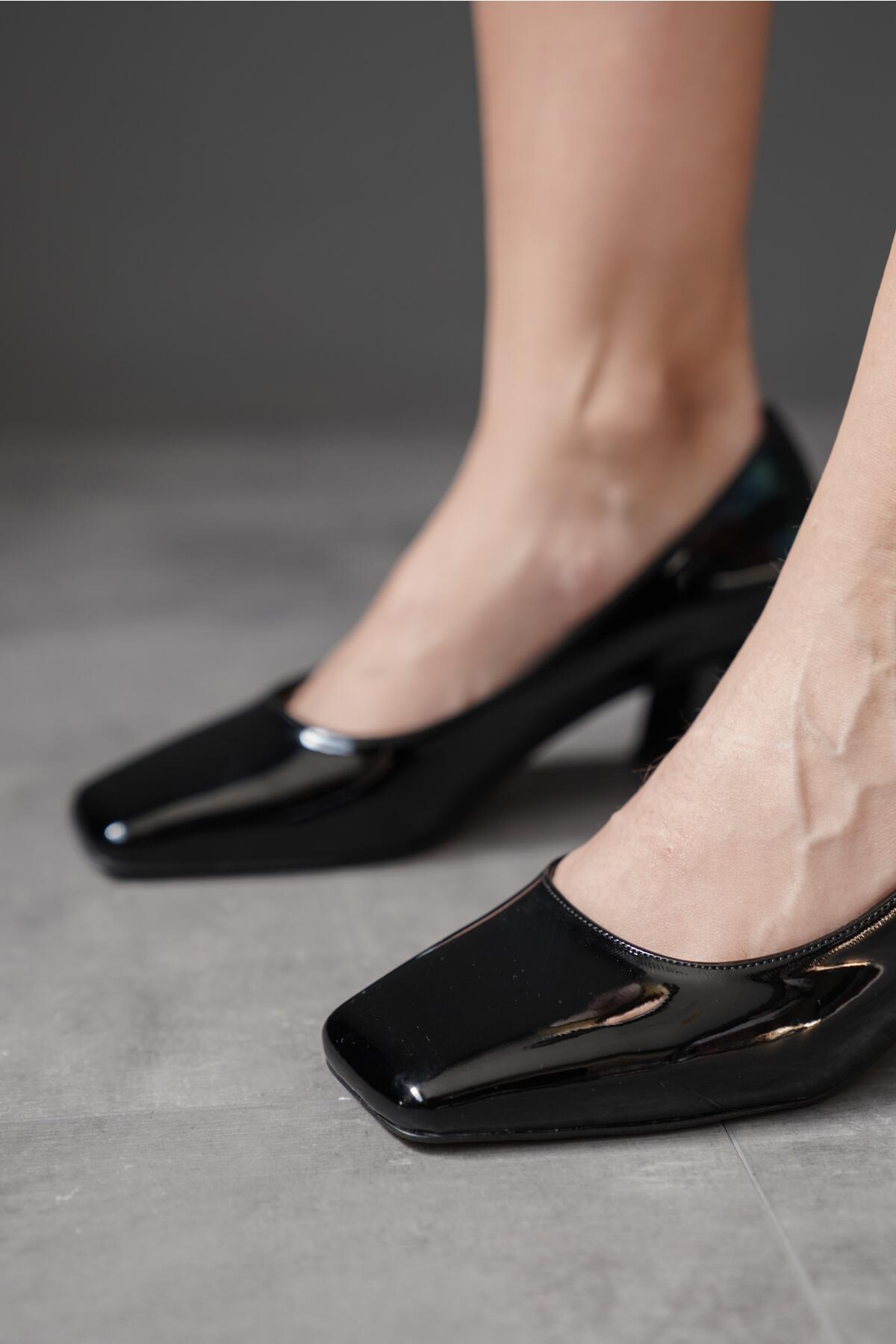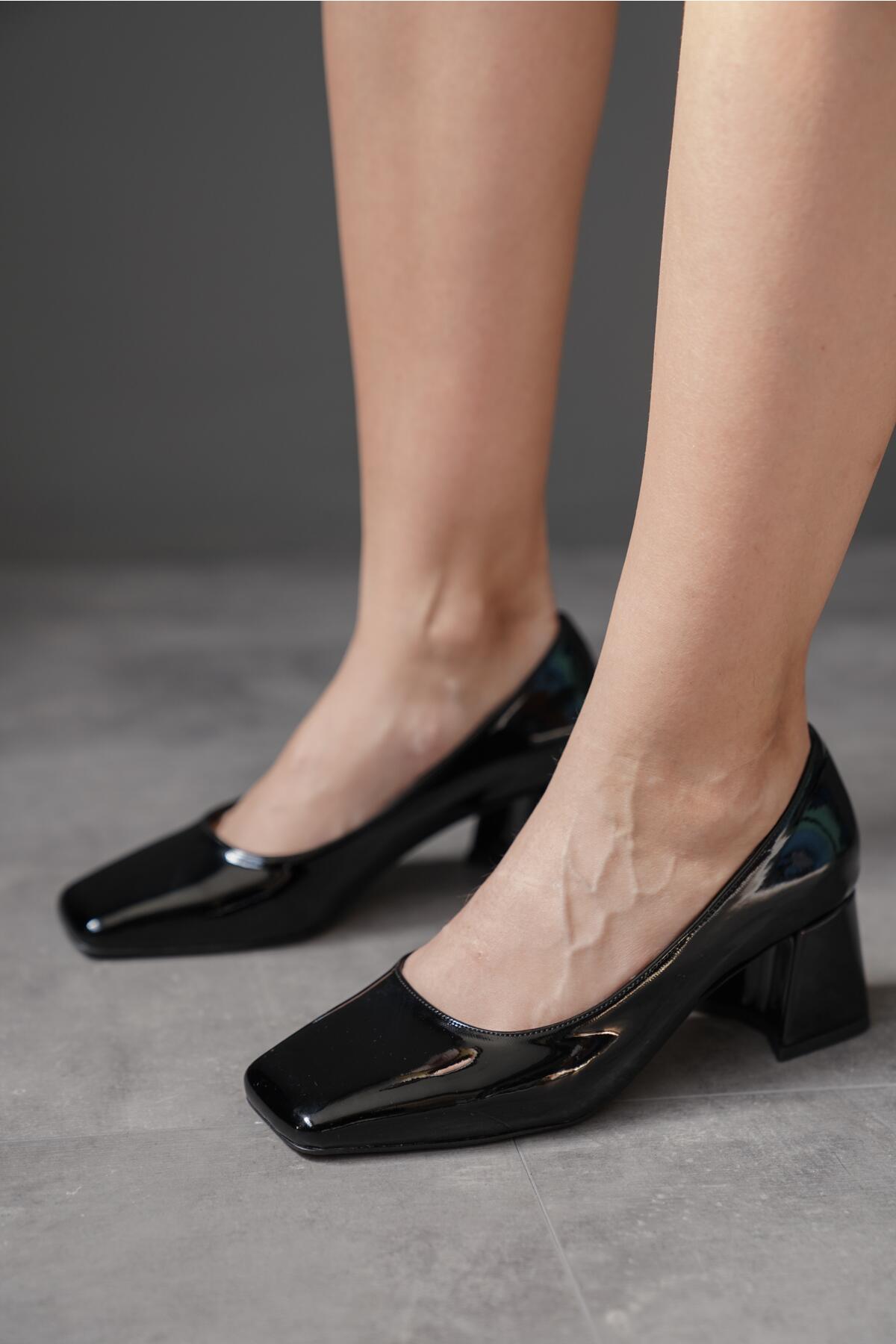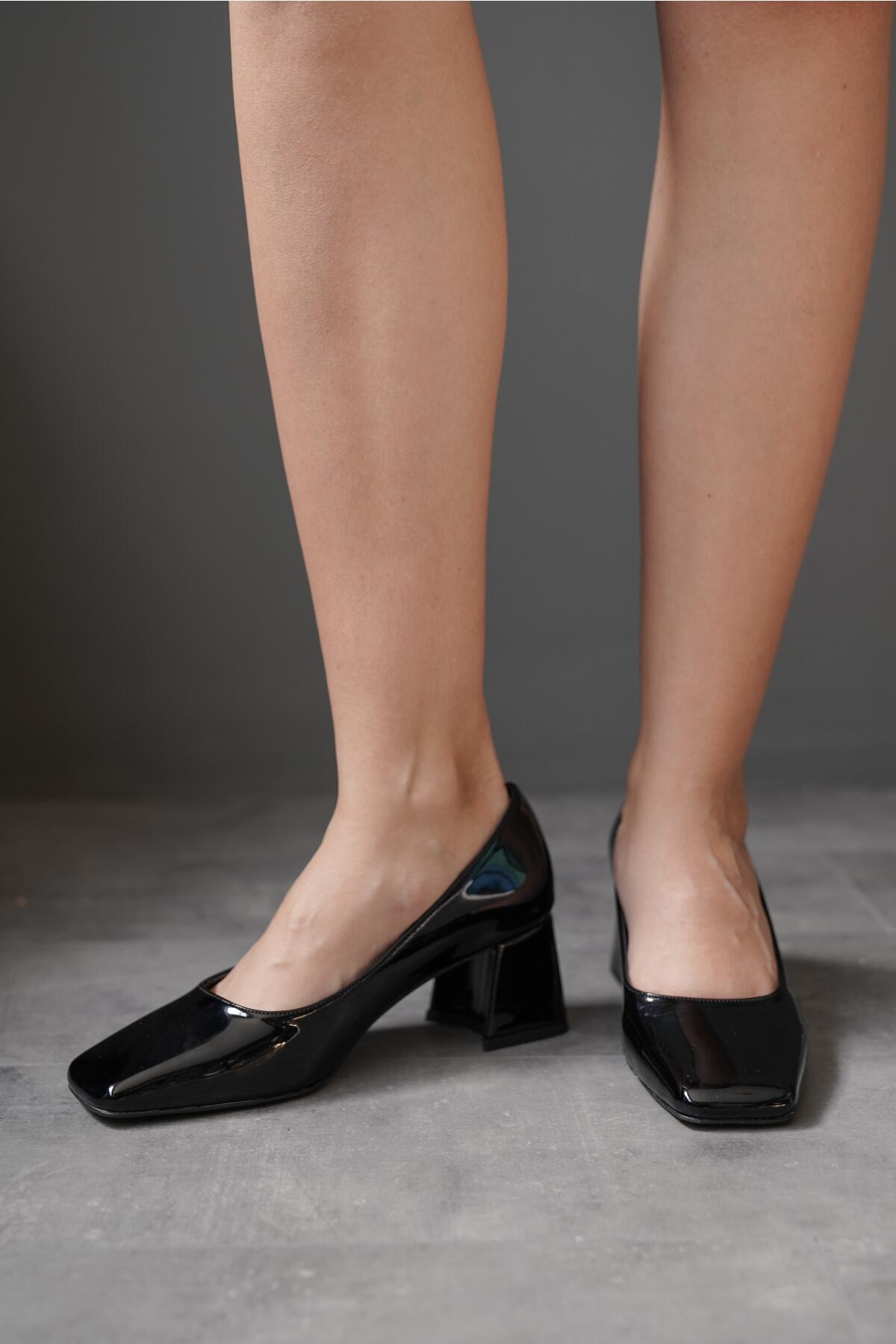 Kadın Kısa Topuklu Ayakkabı Livo Siyah Rugan