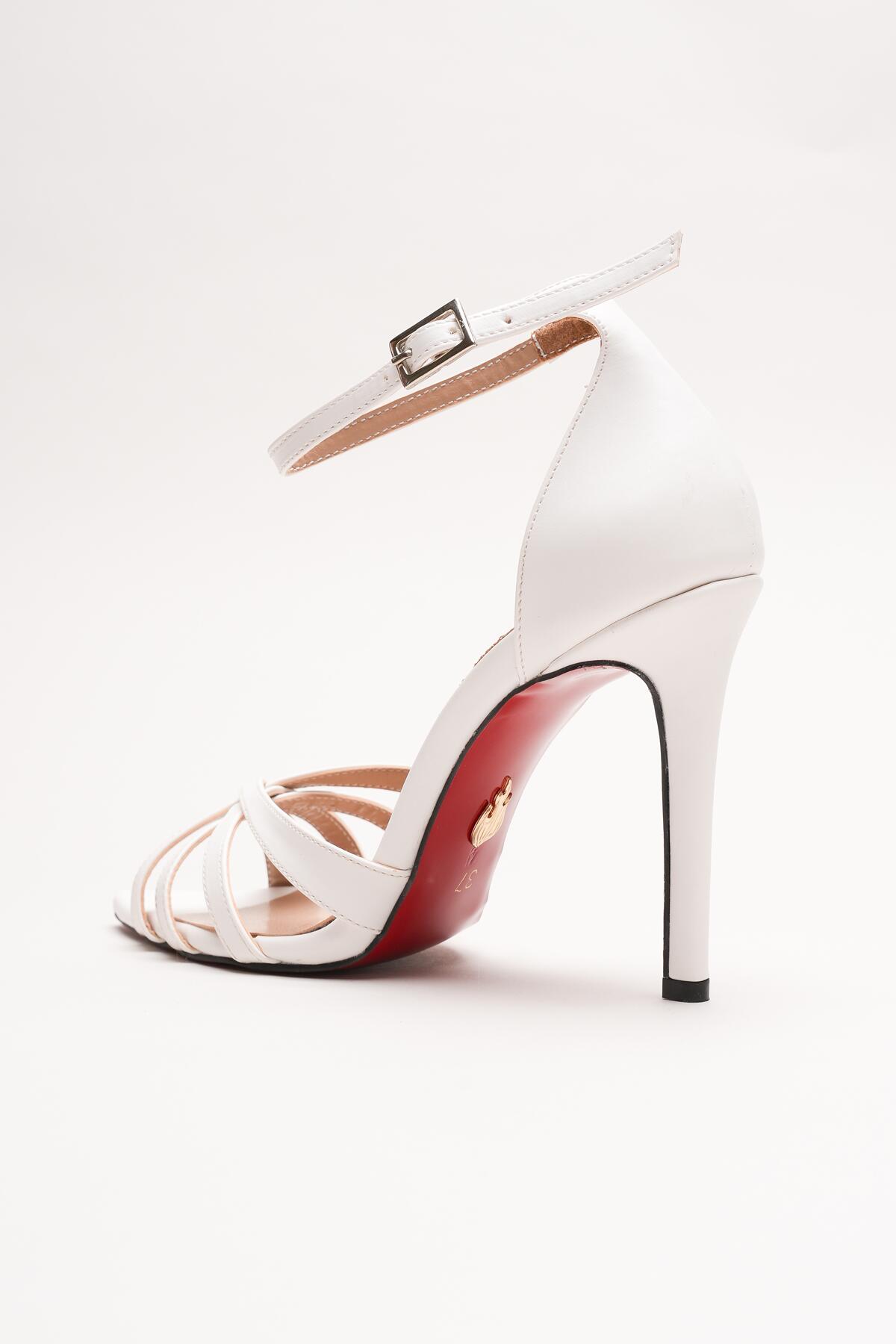 Kadın Özel Tasarım İnce Topuklu Ayakkabı Accosie Beyaz Cilt