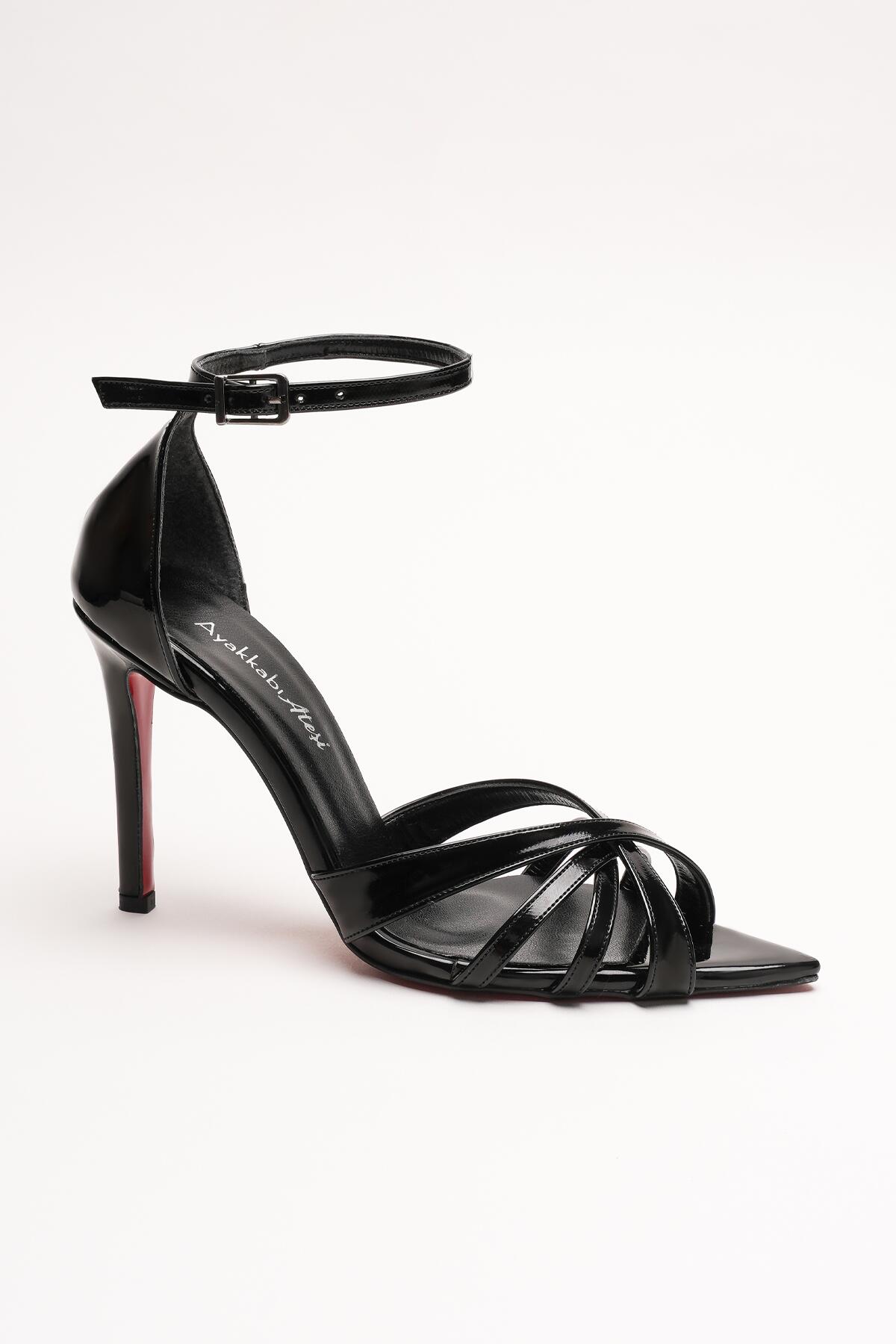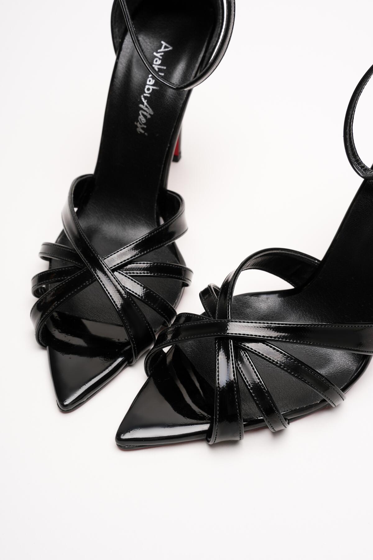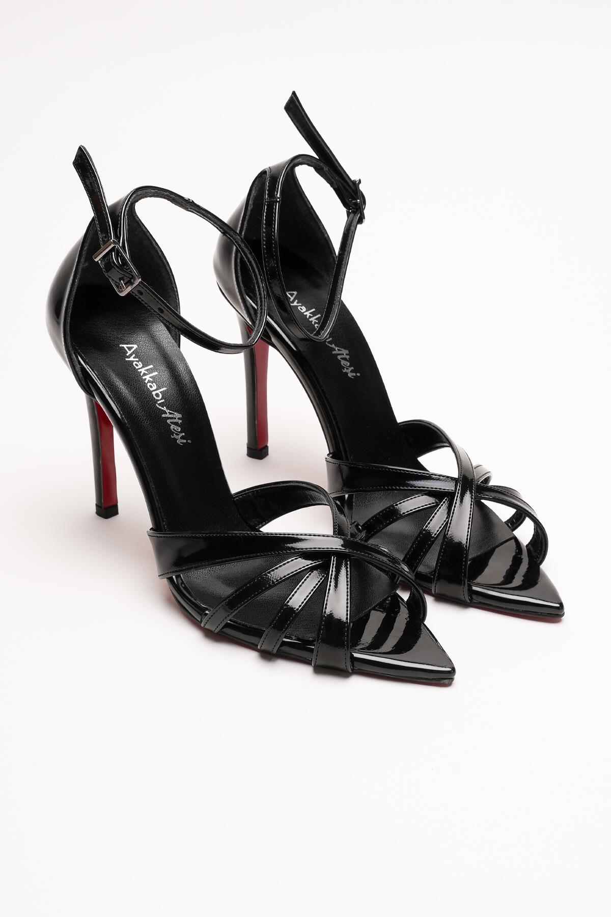 Kadın Özel Tasarım İnce Topuklu Ayakkabı Accosie Siyah Rugan
