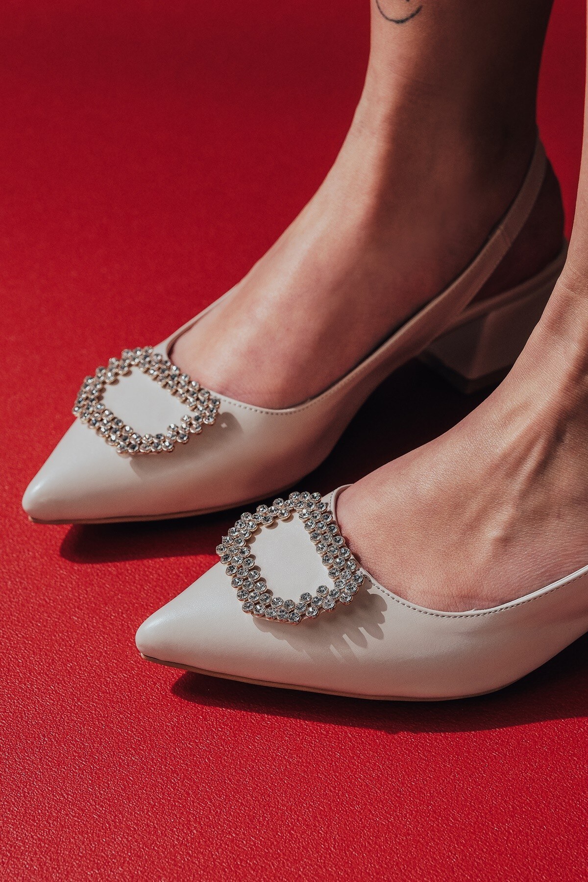 Kadın Silver Taş Kısa Topuklu Ayakkabı Yessi Bej