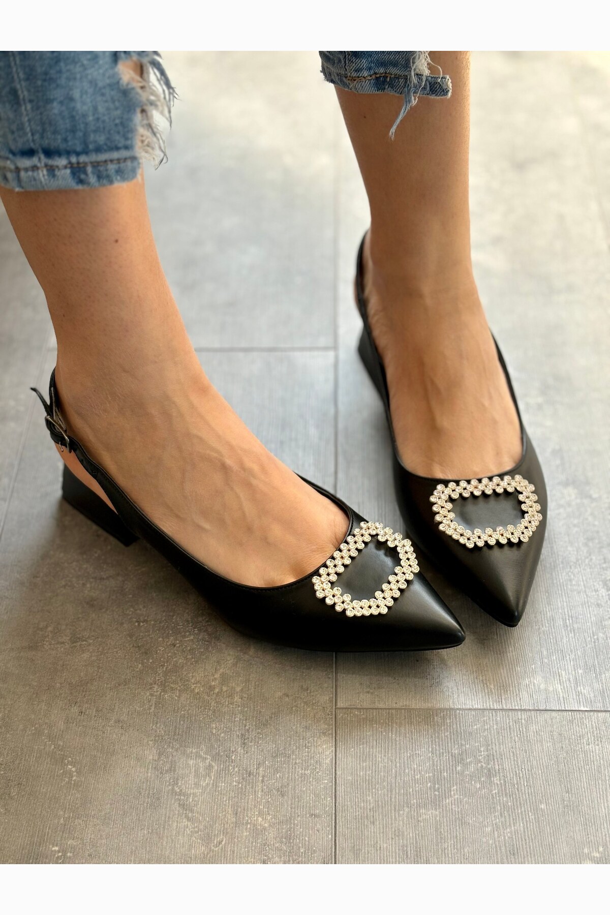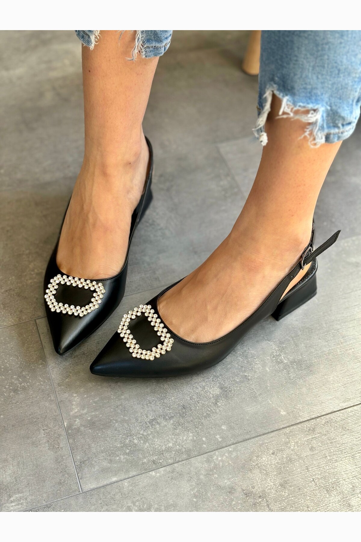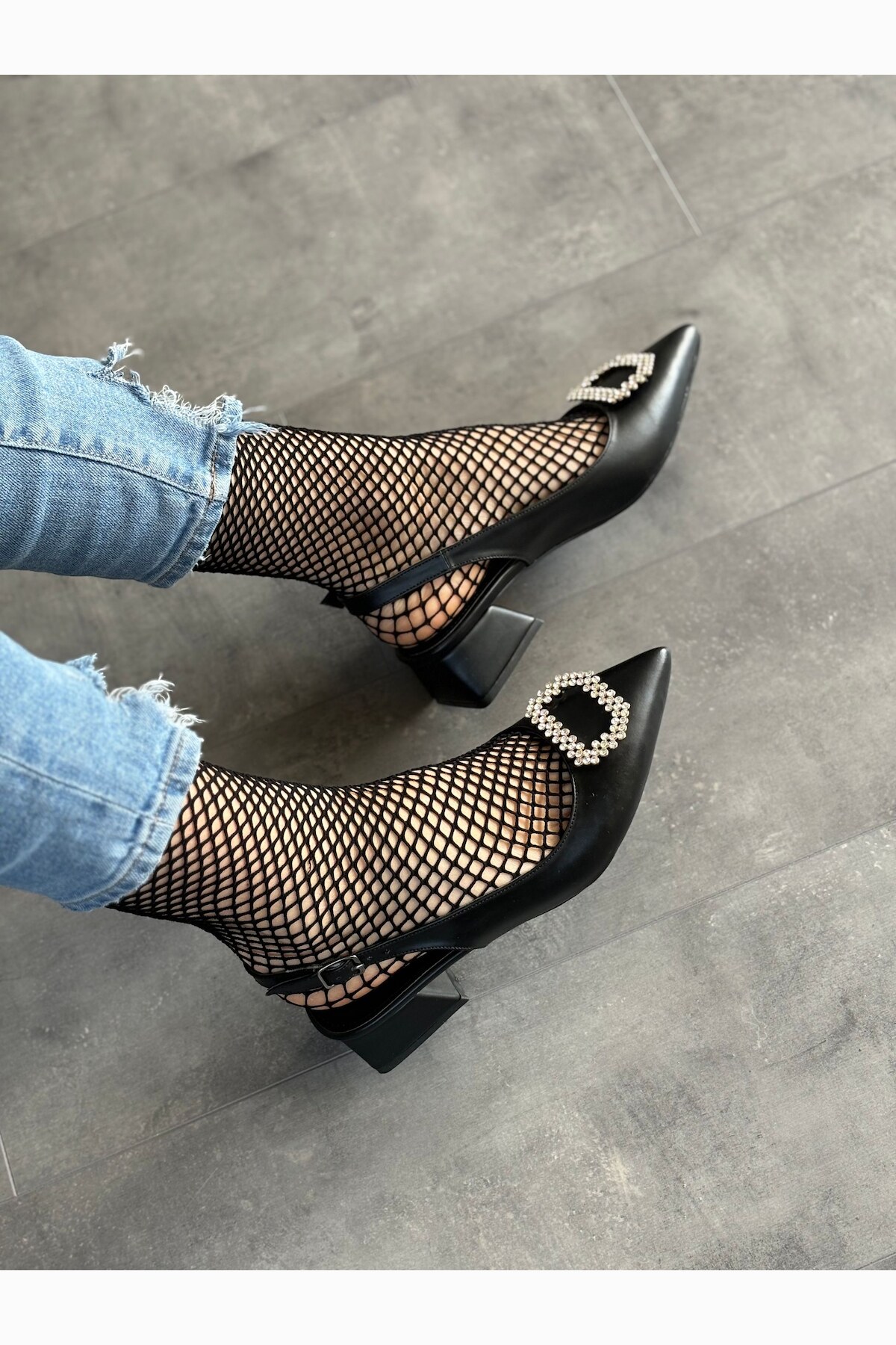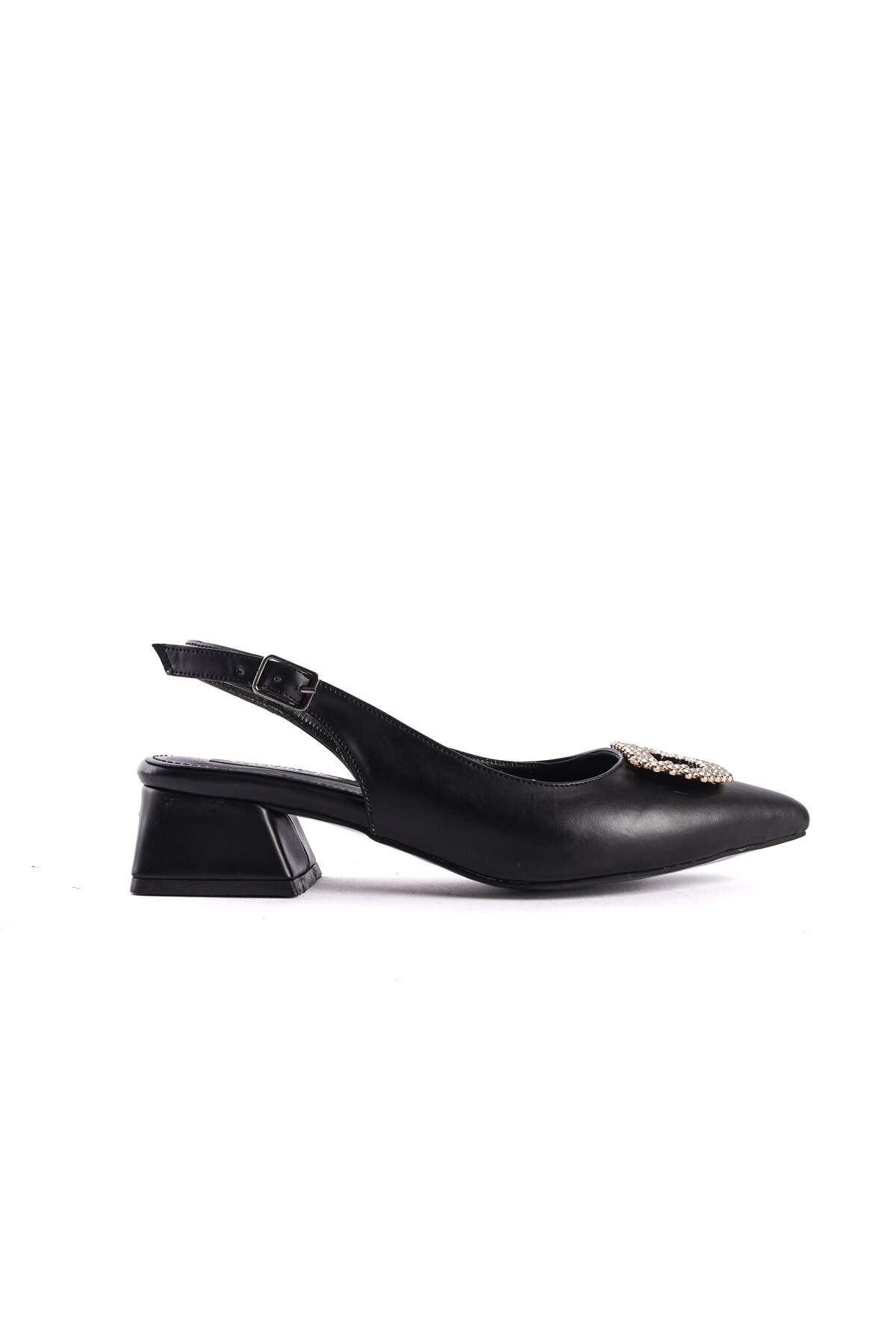 Kadın Silver Taş Kısa Topuklu Ayakkabı Yessi Siyah