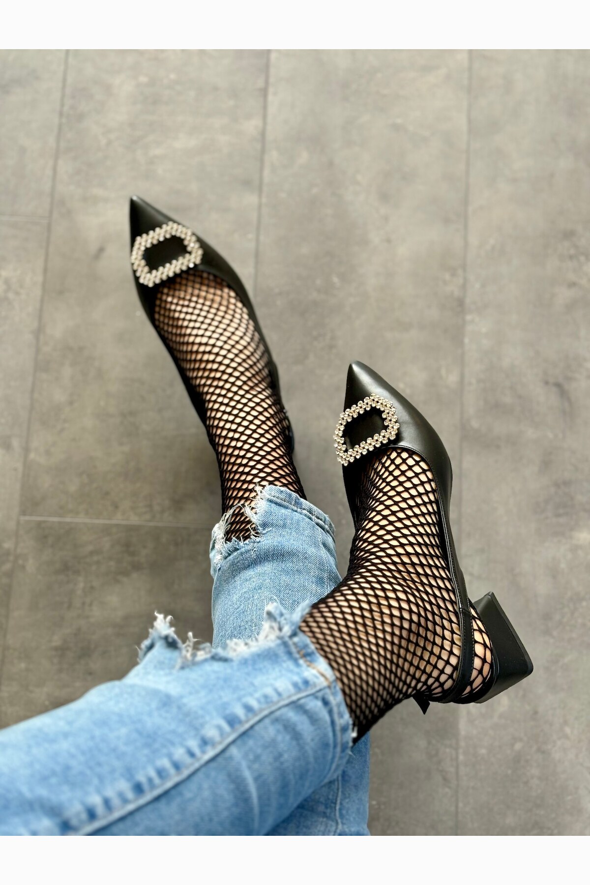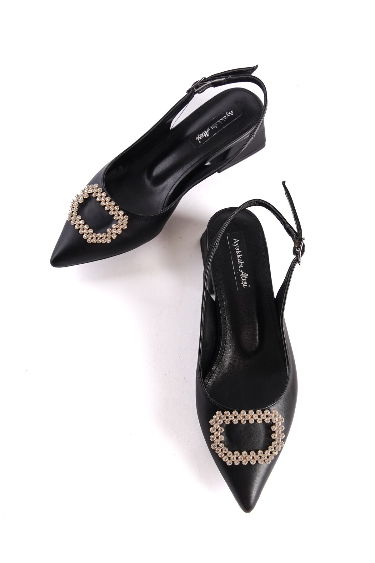 Kadın Taş Baret Kısa Topuklu Ayakkabı Simi