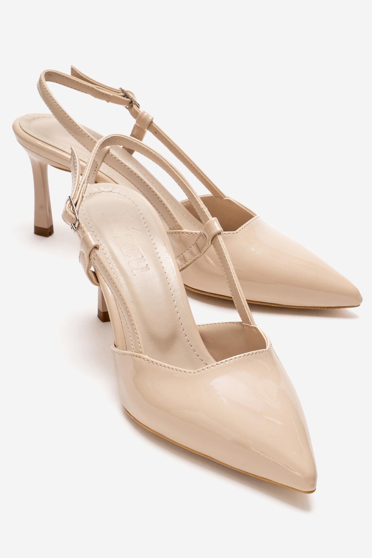 Kadın Sivri Burun Arkası Açık Kısa Topuklu Ayakkabı Cone BEJ RUGAN