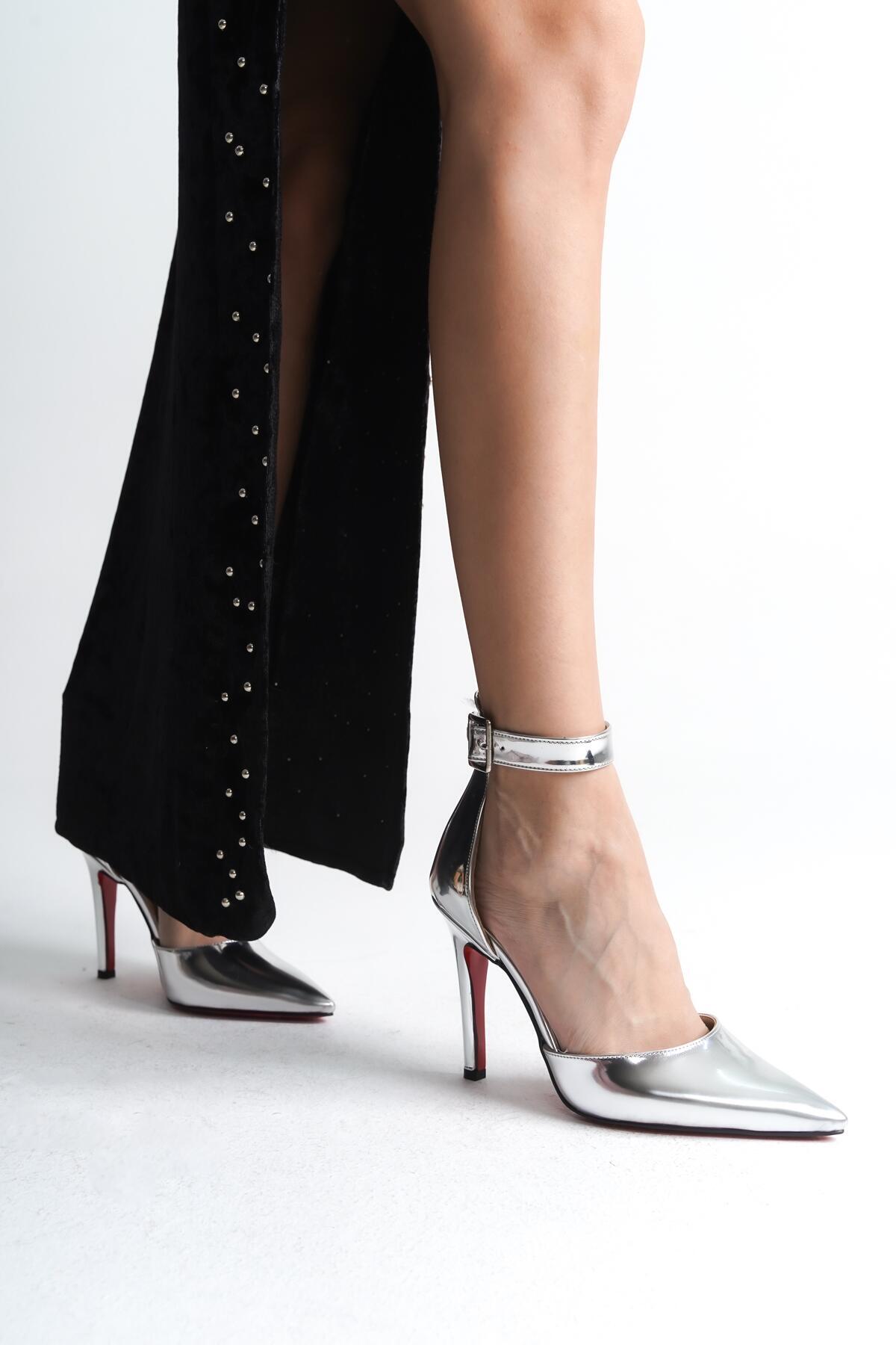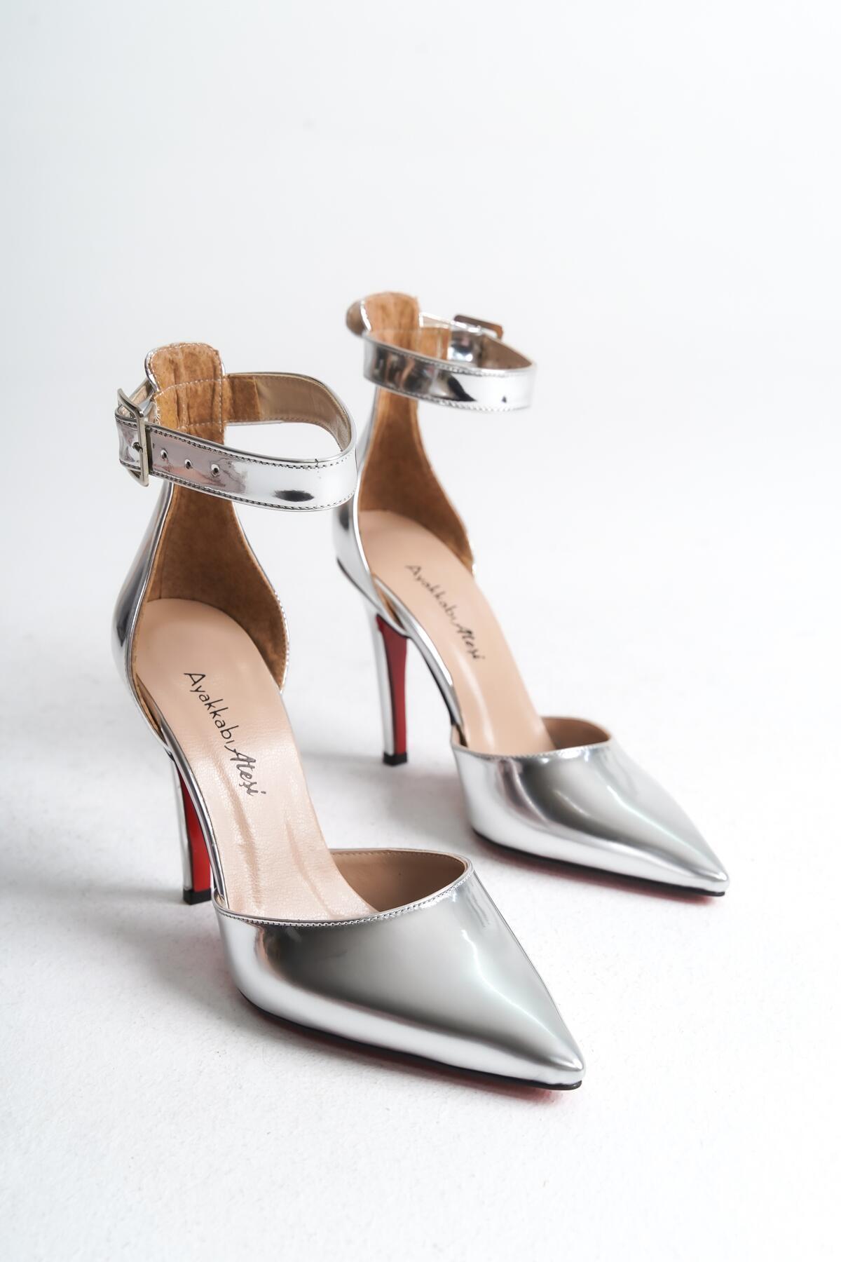 Kadın Sivri Burun İnce Topuklu Ayakkabı Sage Gümüş Ayna