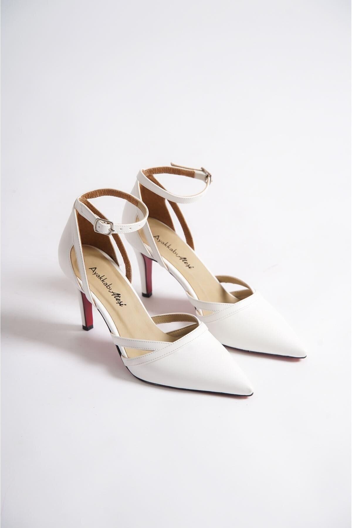 Kadın Sivri Burun Kısa Topuklu Ayakkabı Jamila Beyaz Cilt