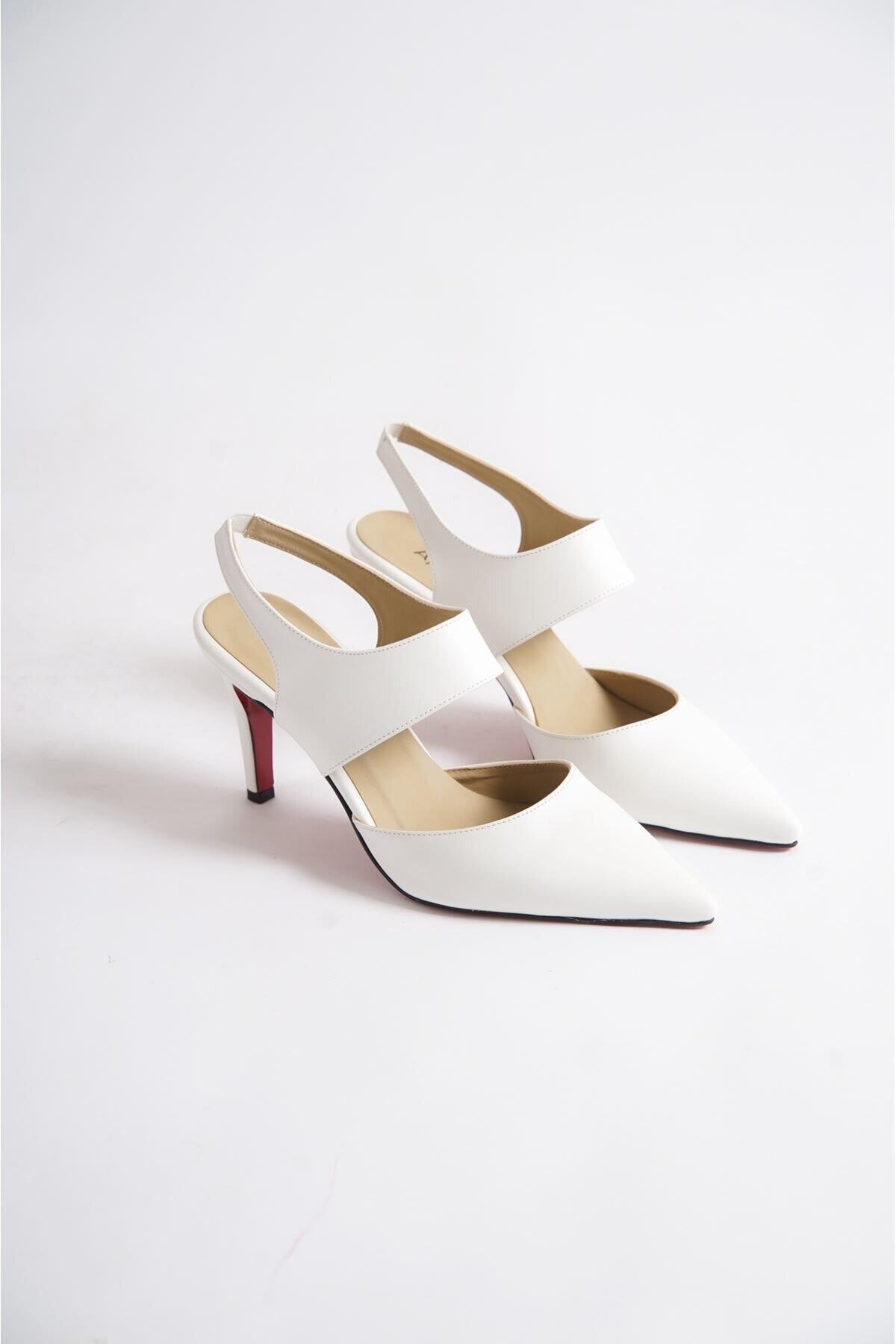 Kadın Troklu Özel Tasarım İnce Topuklu Ayakkabı Stiletto Tamara Beyaz Cilt