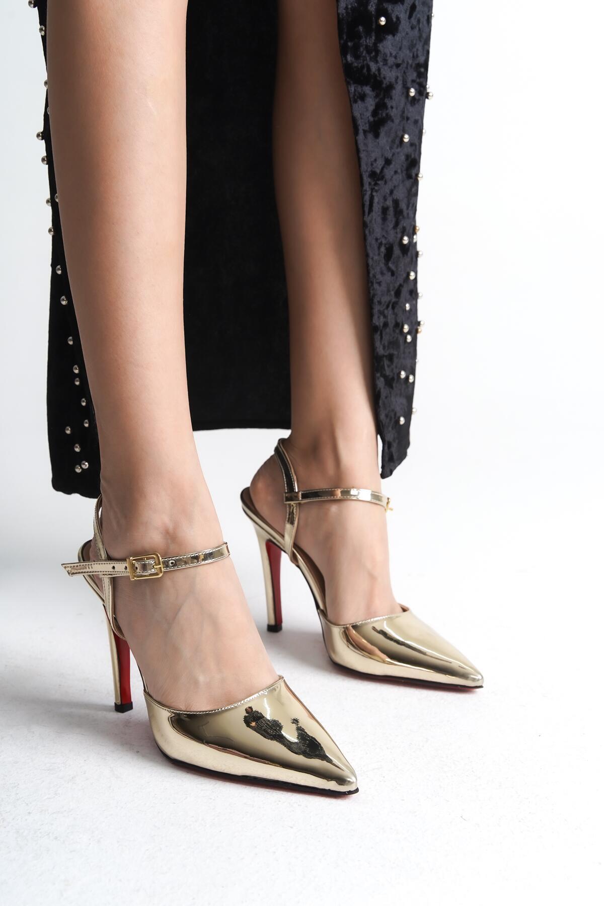 Kadın Tek Baret İnce Topuklu Ayakkabı Mersa Altın Ayna