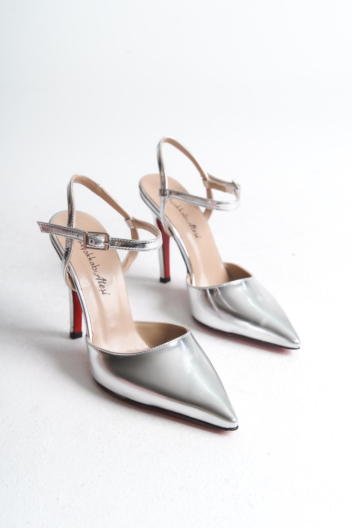 Kadın Tek Baret İnce Topuklu Ayakkabı Mersa Gümüş Ayna