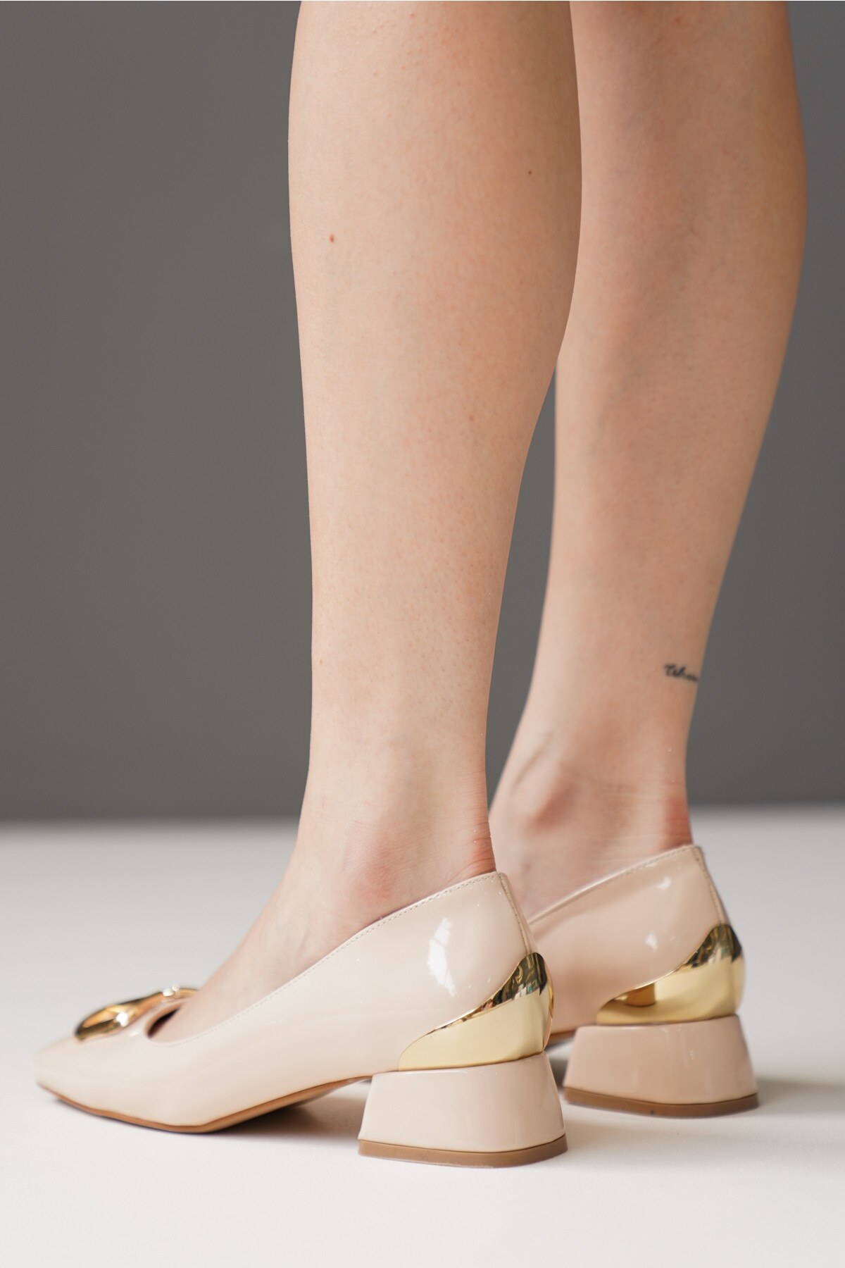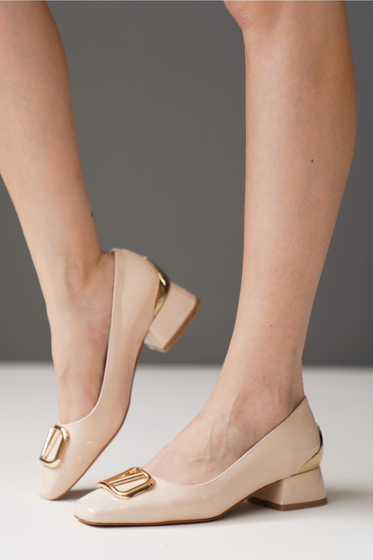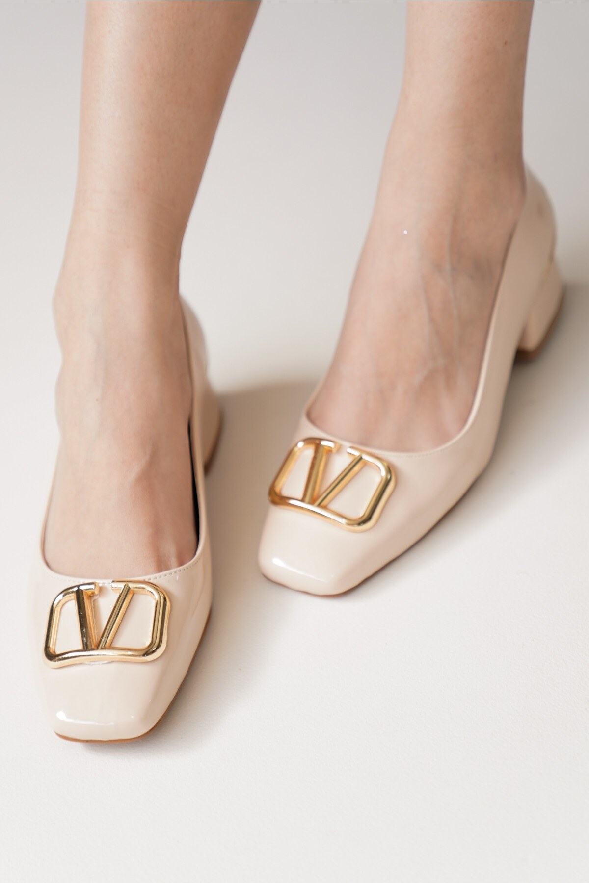 Kadın V Toka Kısa Topuklu Ayakkabı Valerio Bej