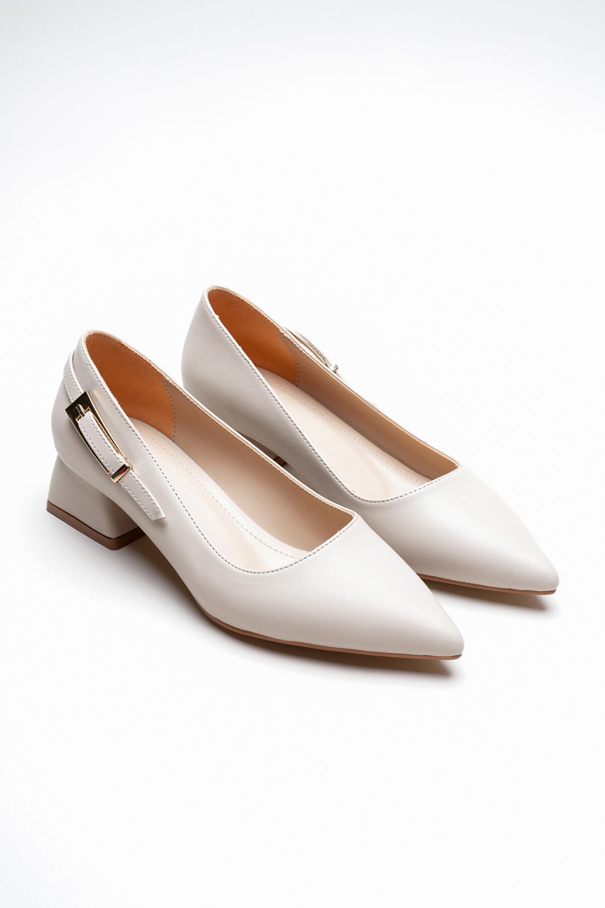 Kadın Yandan Toka Detaylı Kalın Kısa Topuklu Ayakkabı Goria Bej