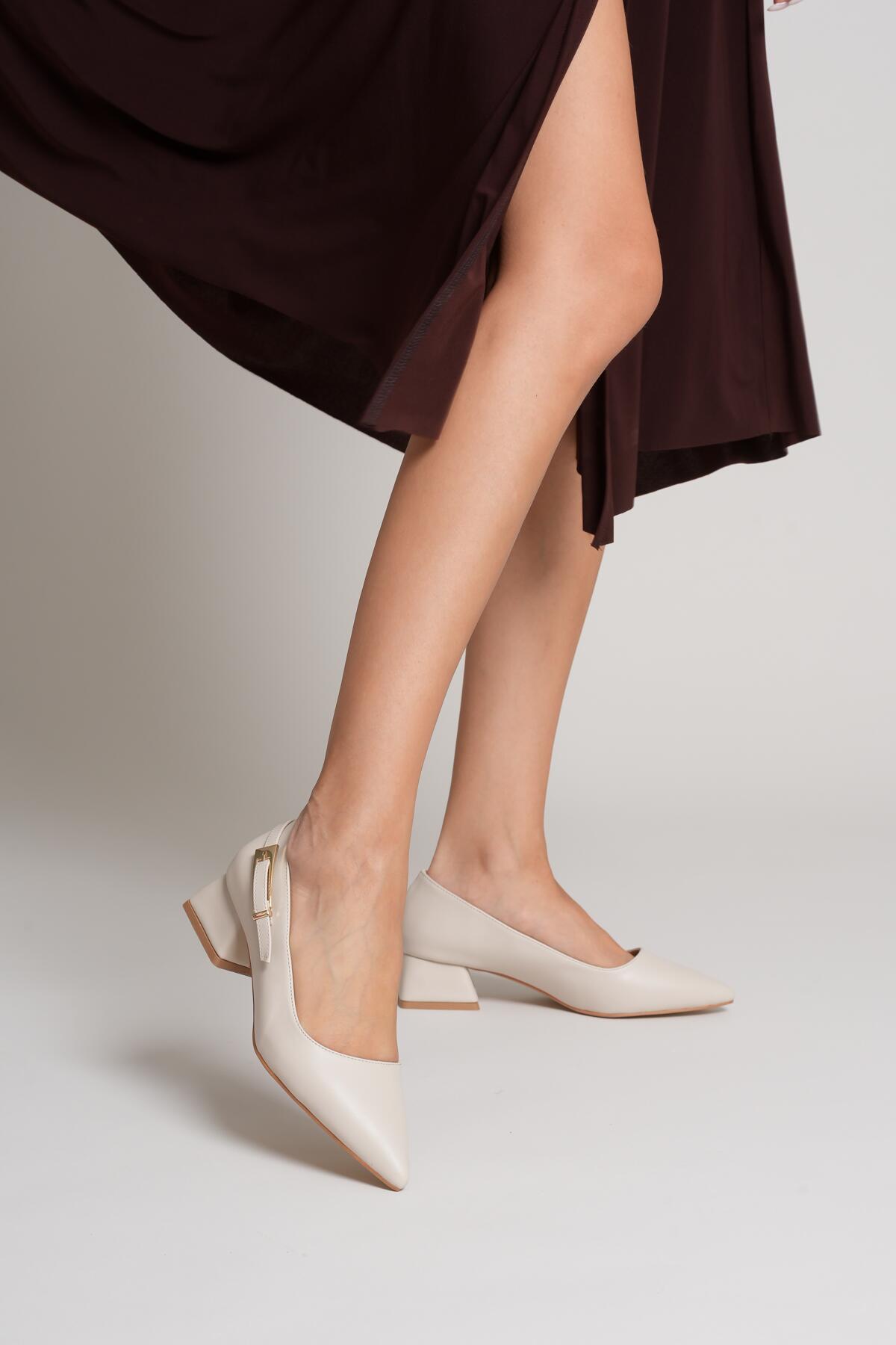 Kadın Tasarım Toka Karnıyarık Kısa Topuklu Ayakkabı Amori