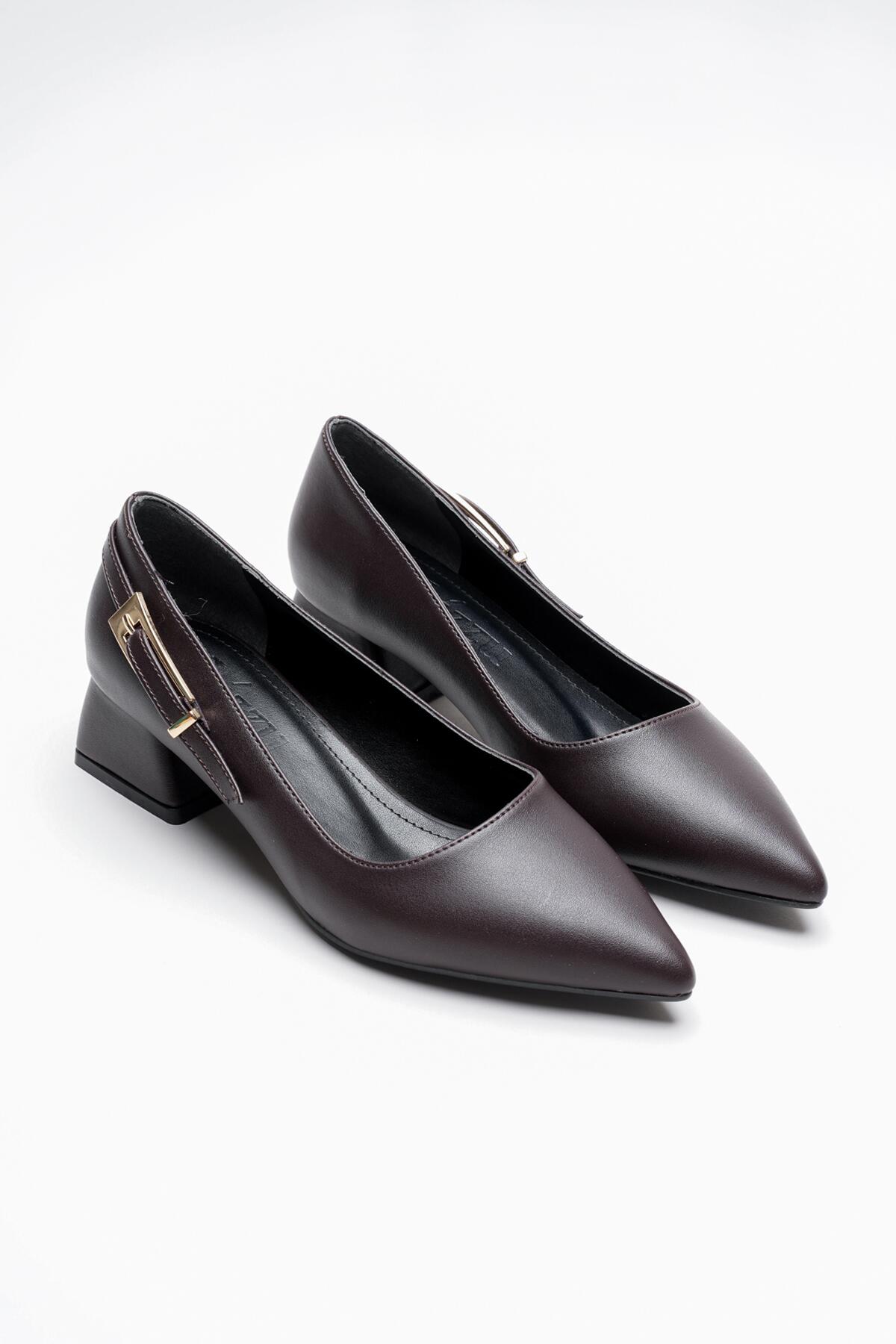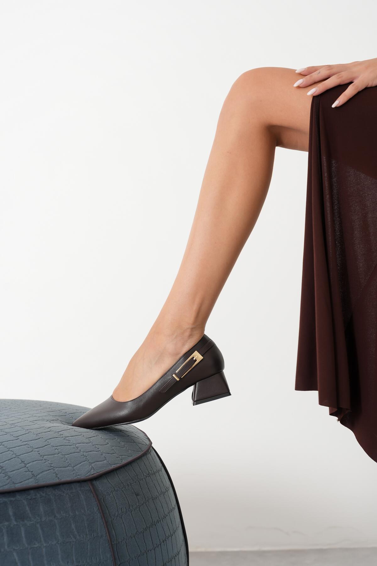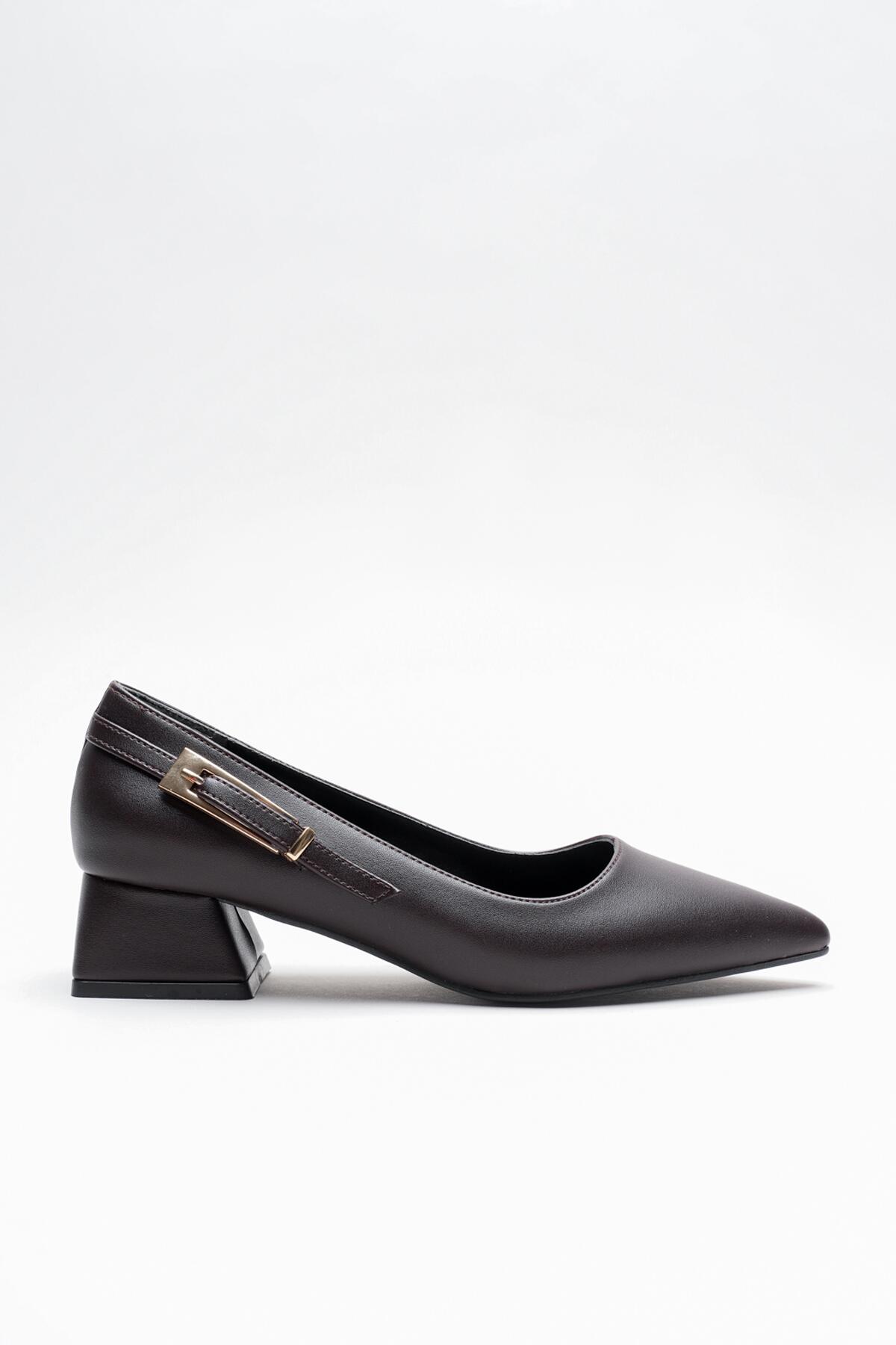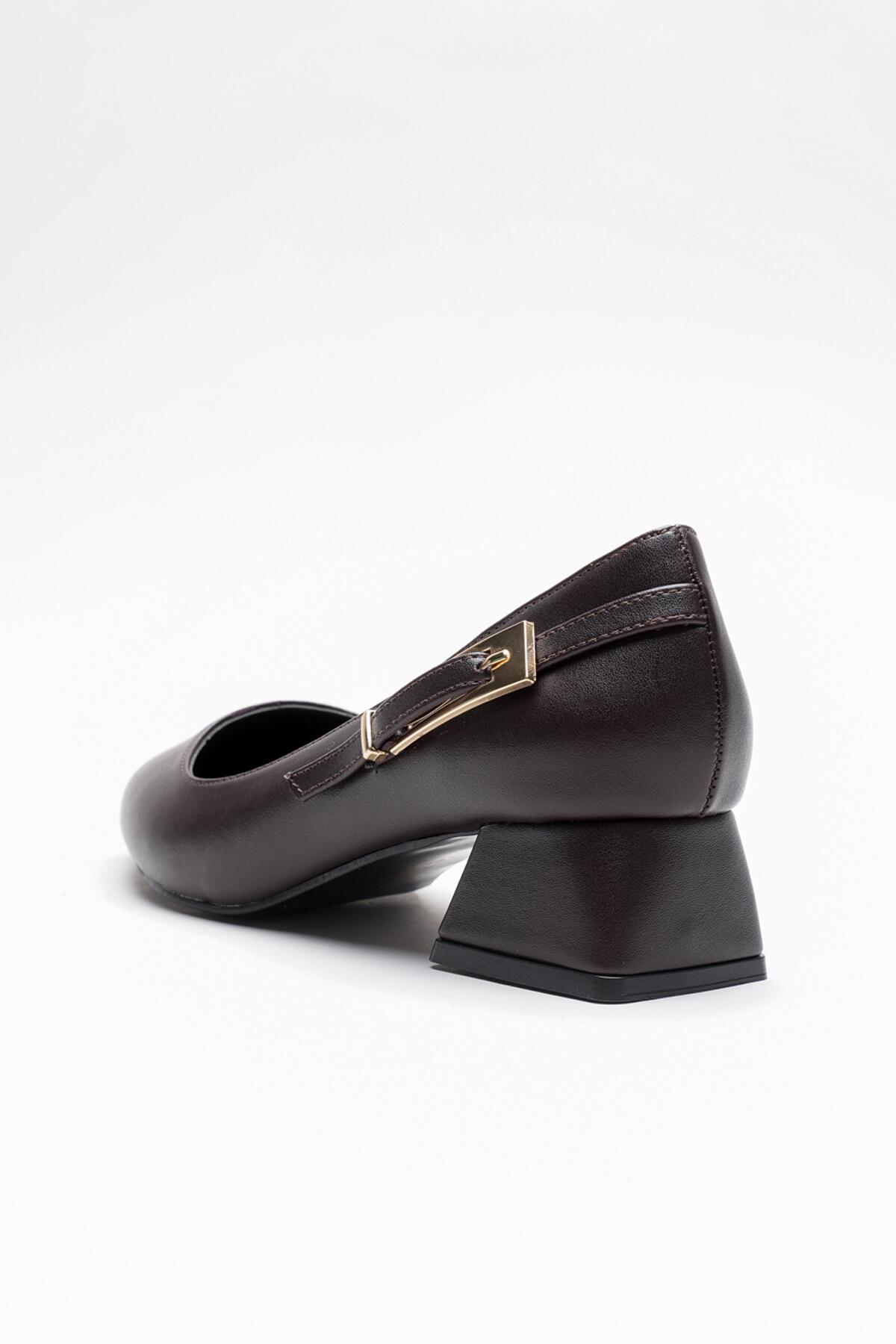 Kadın Yandan Toka Detaylı Kalın Kısa Topuklu Ayakkabı Goria Kahverengi