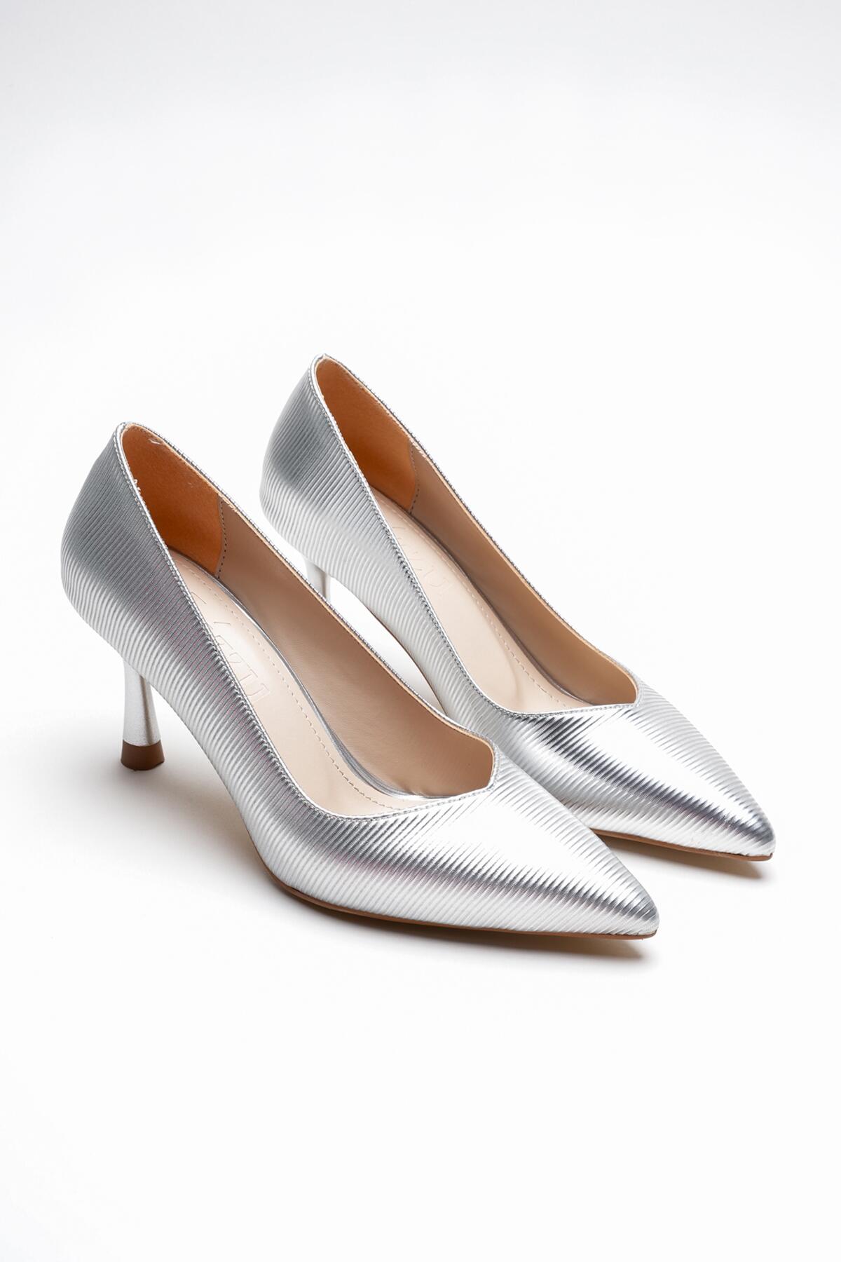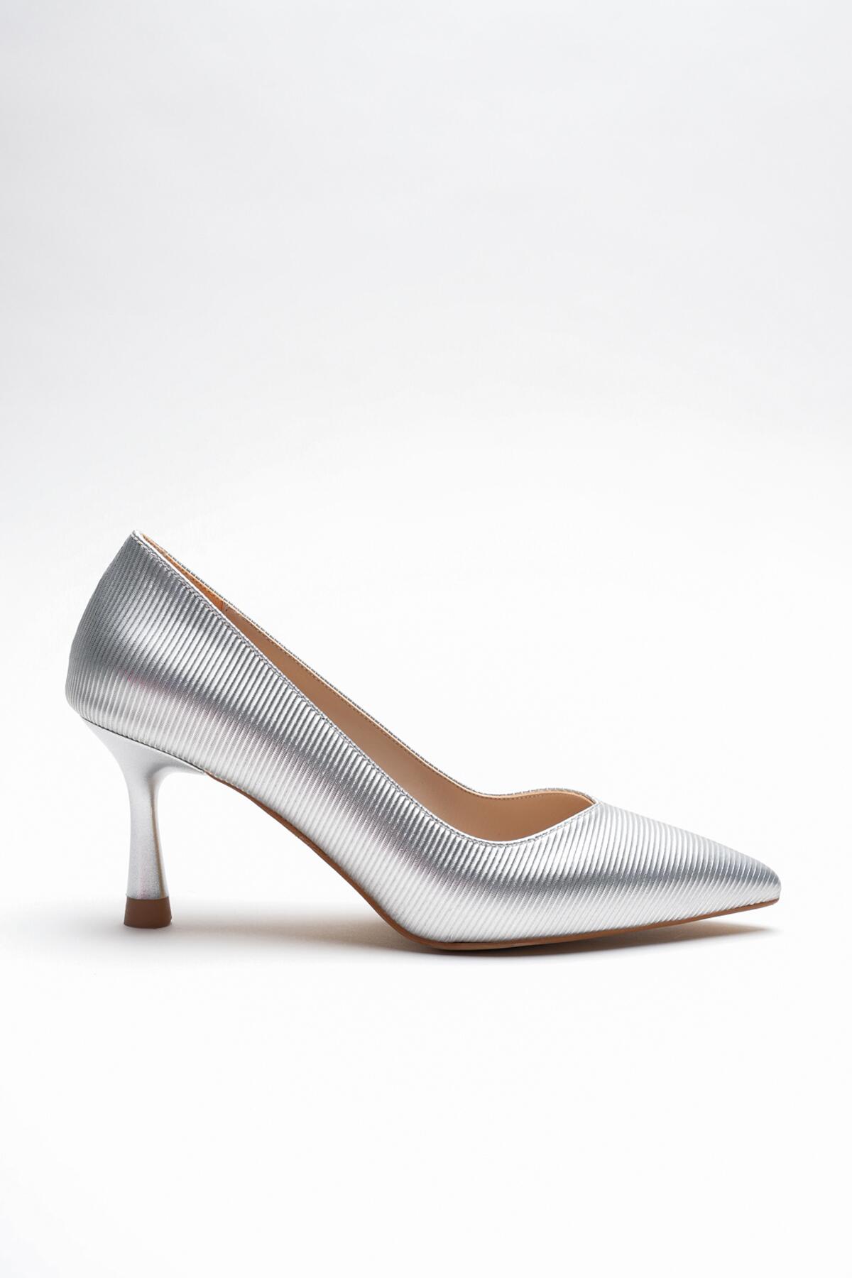 Kadın Zarif Topuklu Sivri Burun Stiletto Harly Gümüş