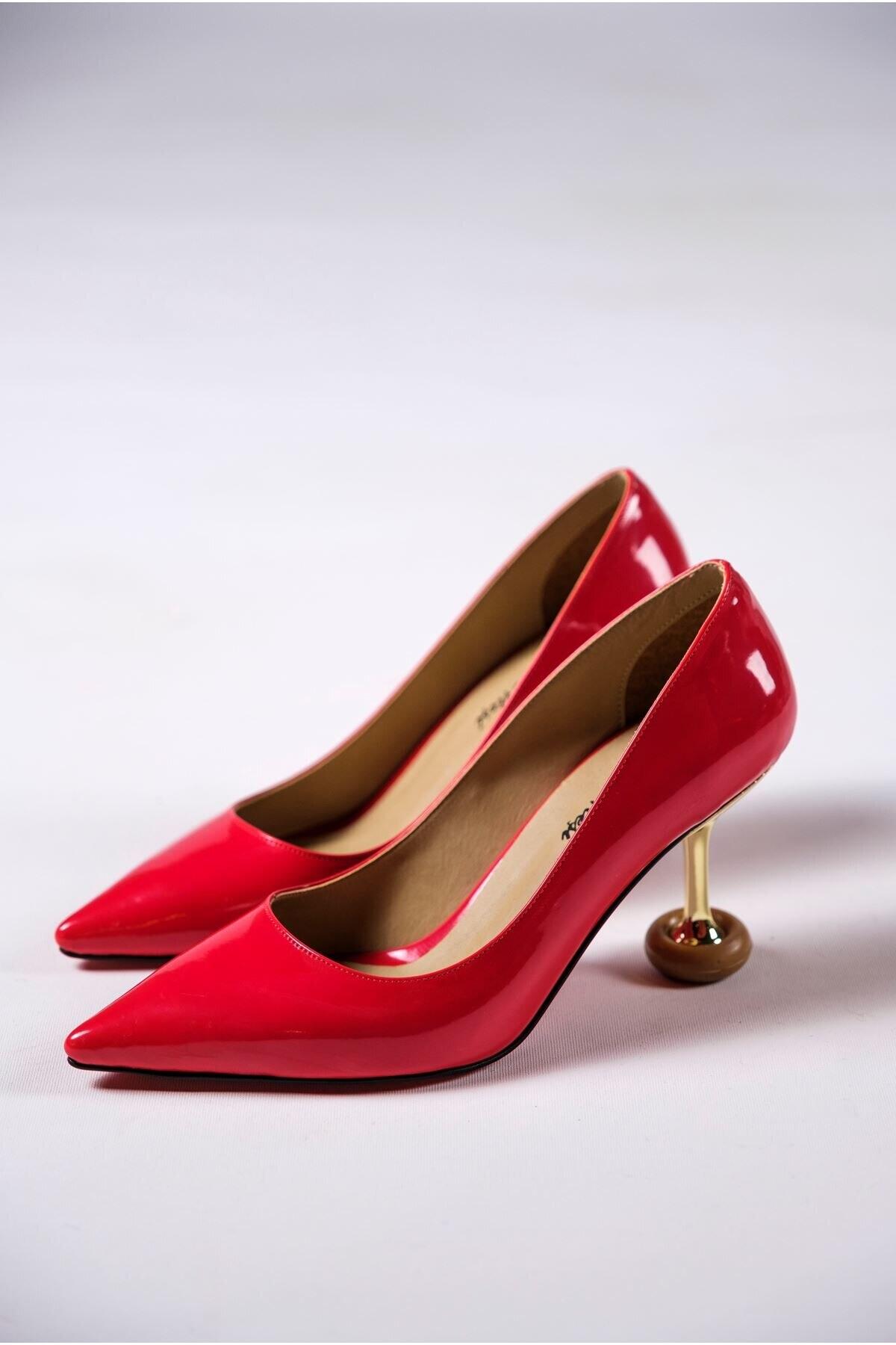 Kırmızı Rugan Kadın Özel Tasarım Topuklu Ayakkabı Stiletto Renate Kırmızı Rugan