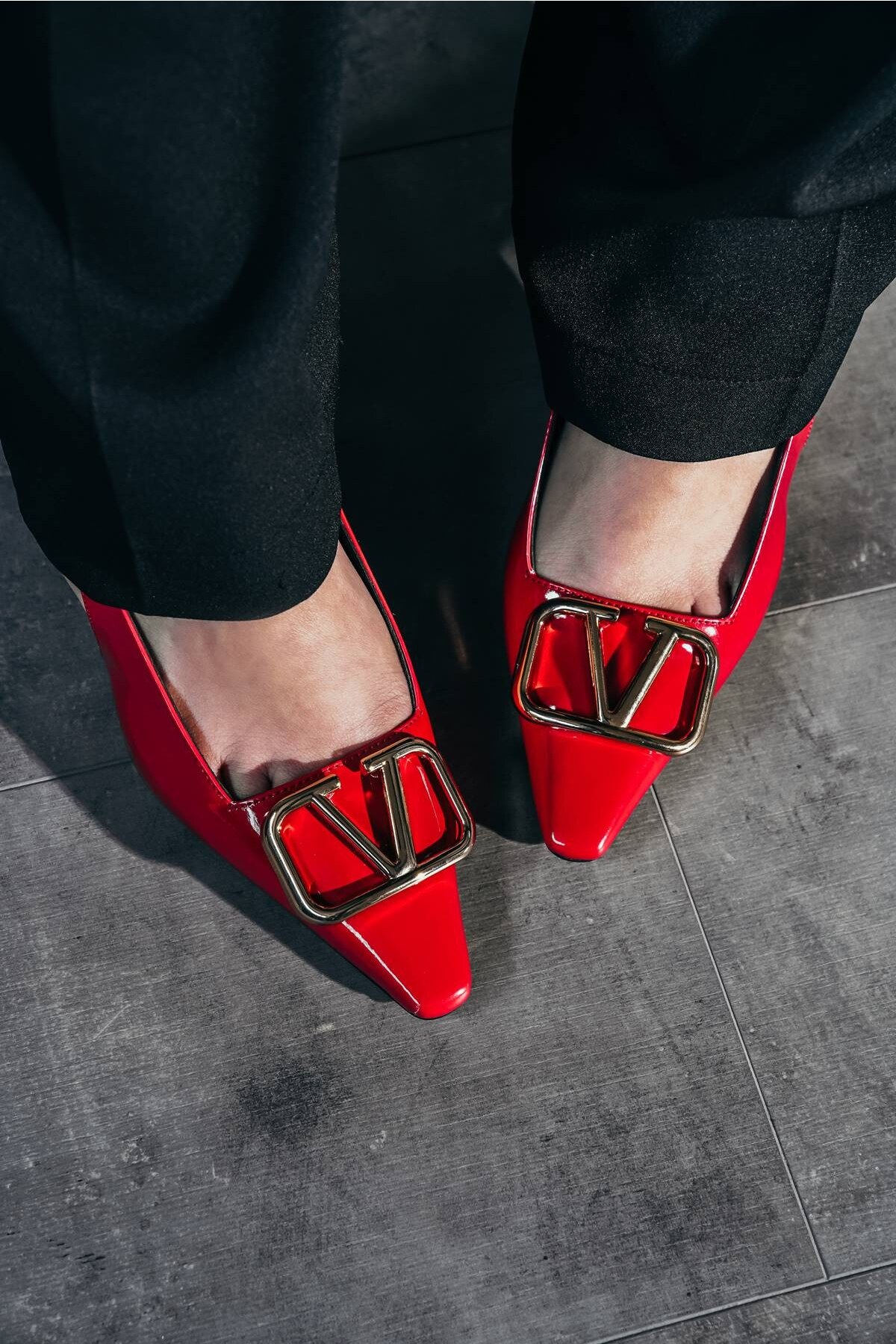 Kırmızı Rugan V Toka Detaylı Kadın Topuklu Ayakkabı Niolas Kırmızı