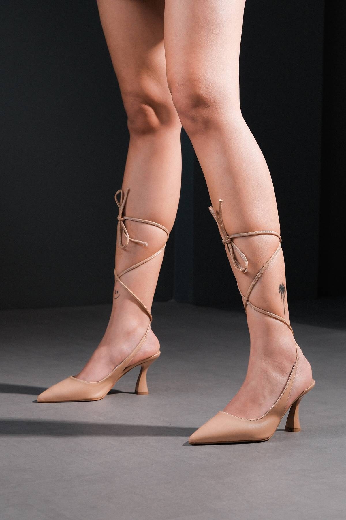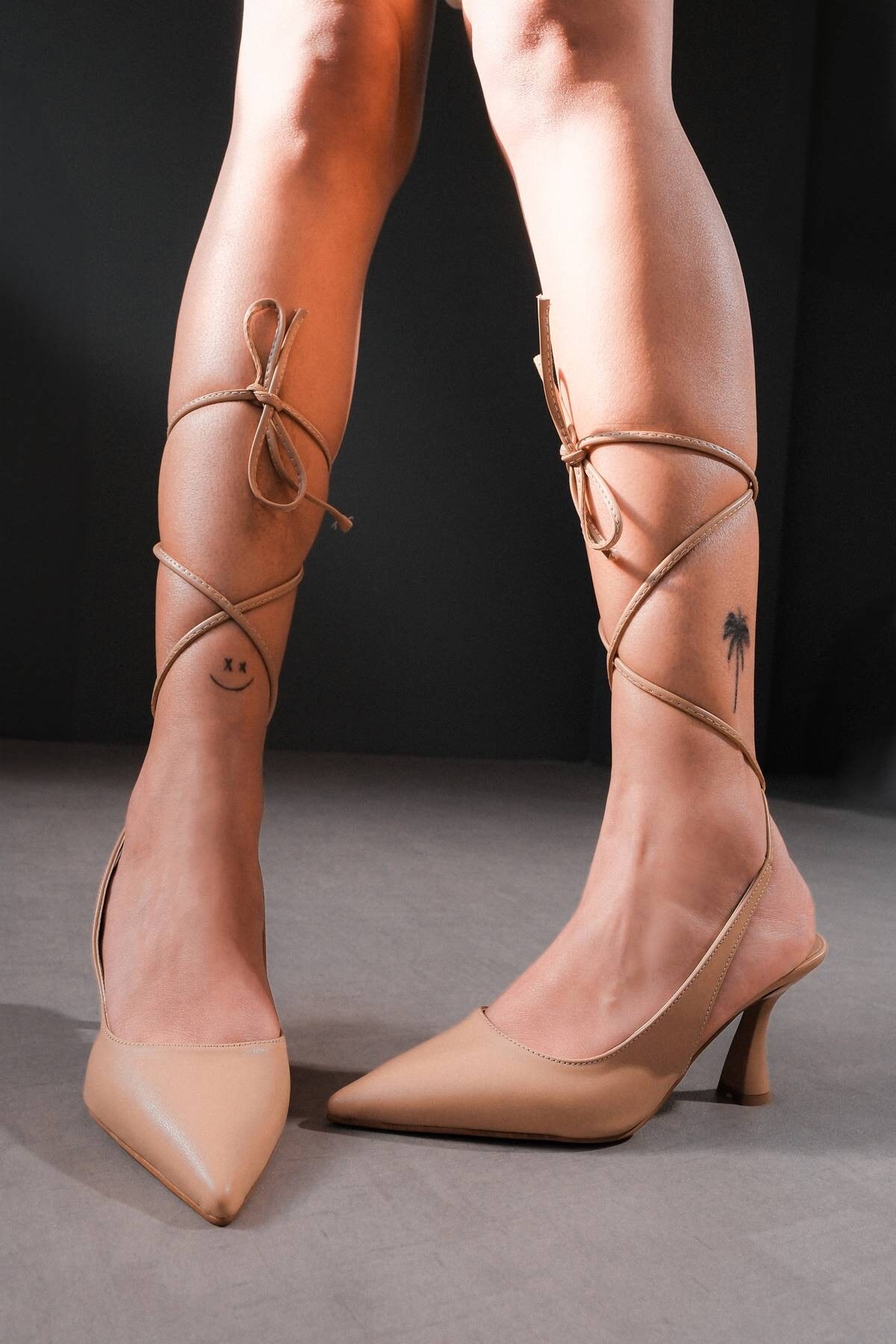 Nude Cilt Bilekten Bağlamalı Kadın Topuklu Ayakkabı Sise Nude Cilt