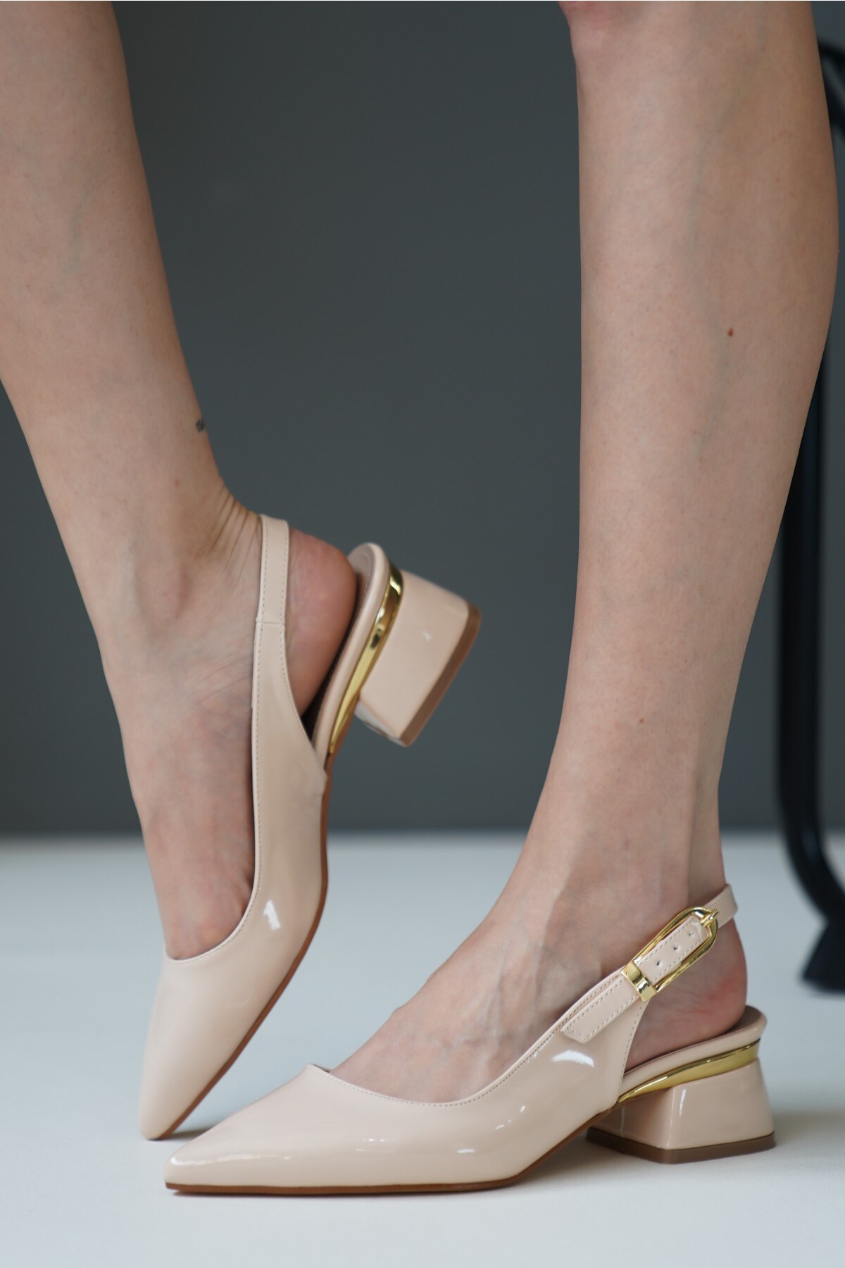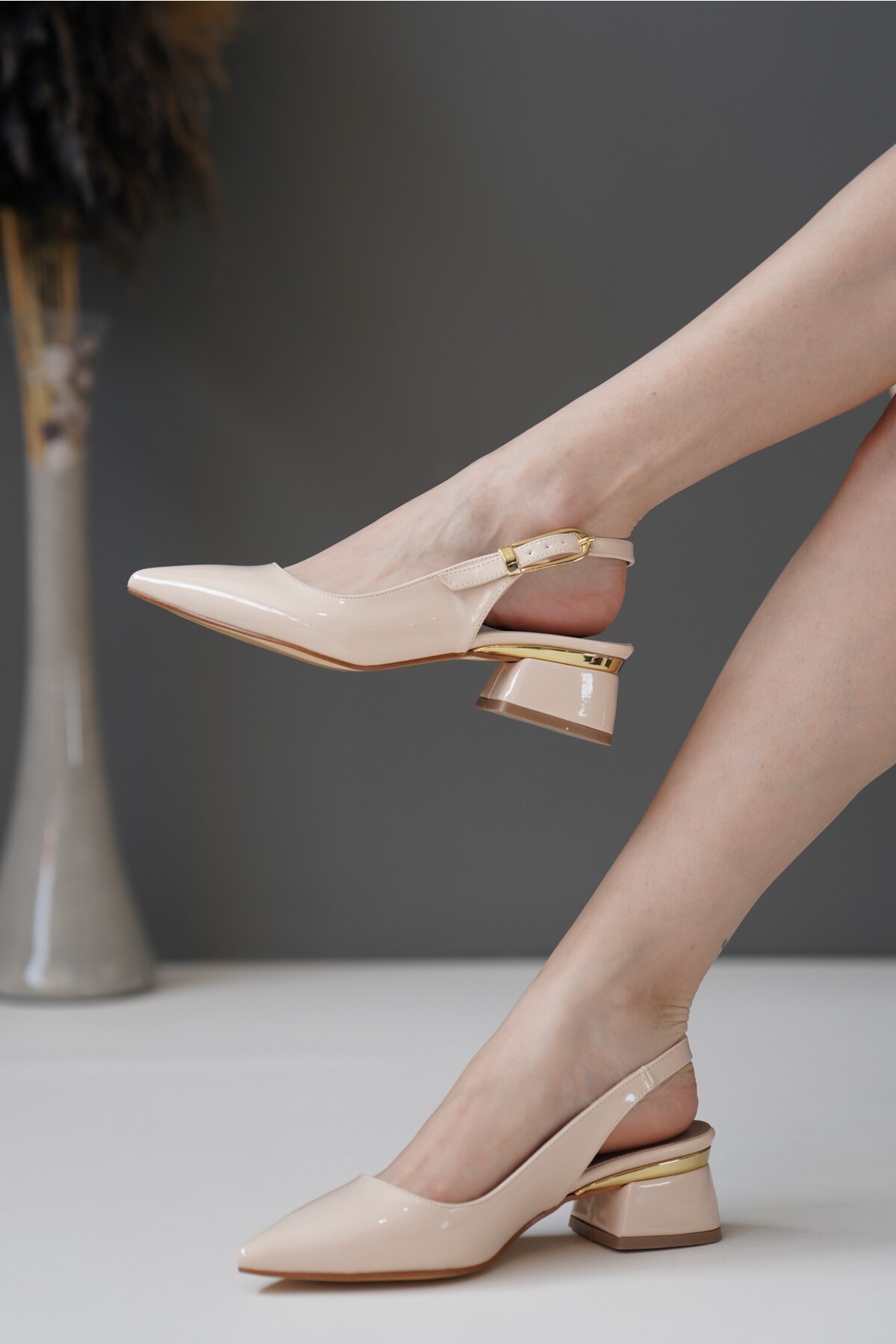 Kadın Gold Detaylı Topuklu Ayakkabı Vorina Nude