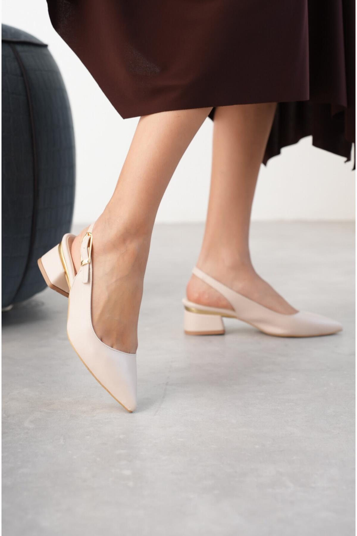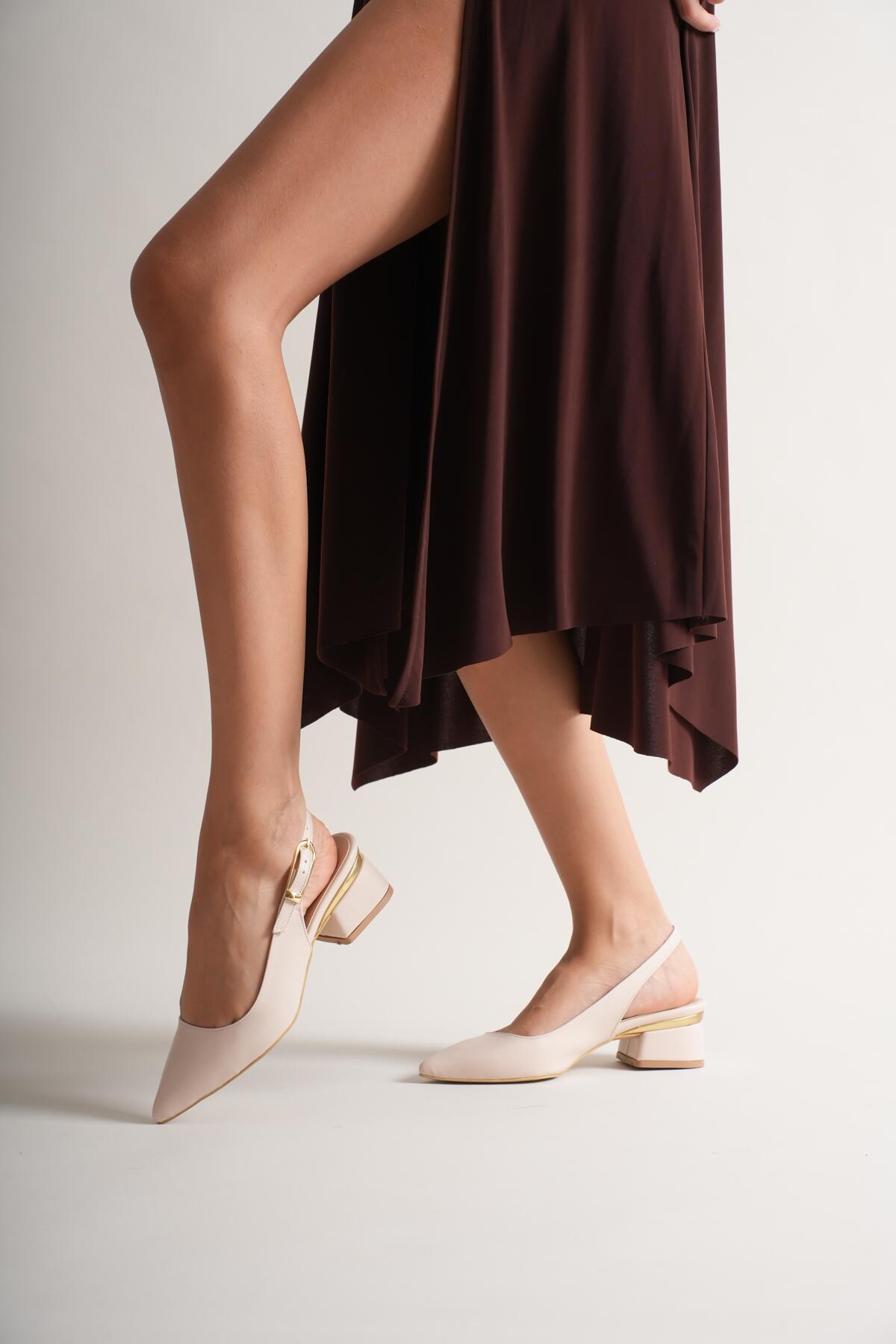 Kadın Gold Detaylı Topuklu Ayakkabı Vorina Bej