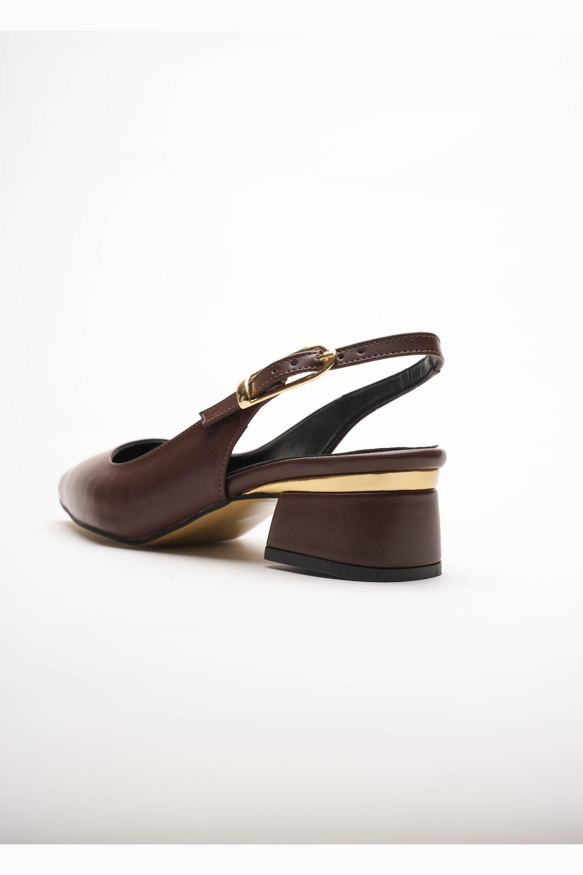 Kadın Gold Detaylı Topuklu Ayakkabı Vorina Kahverengi