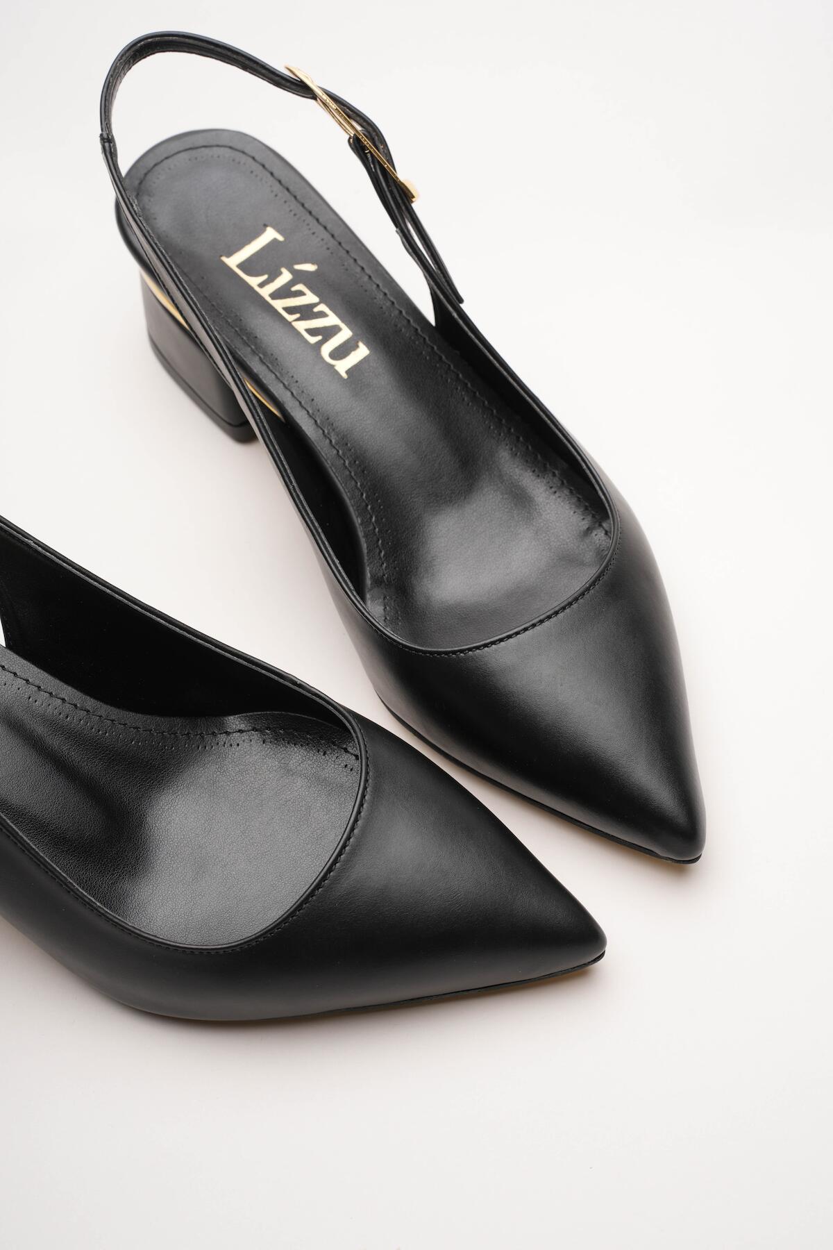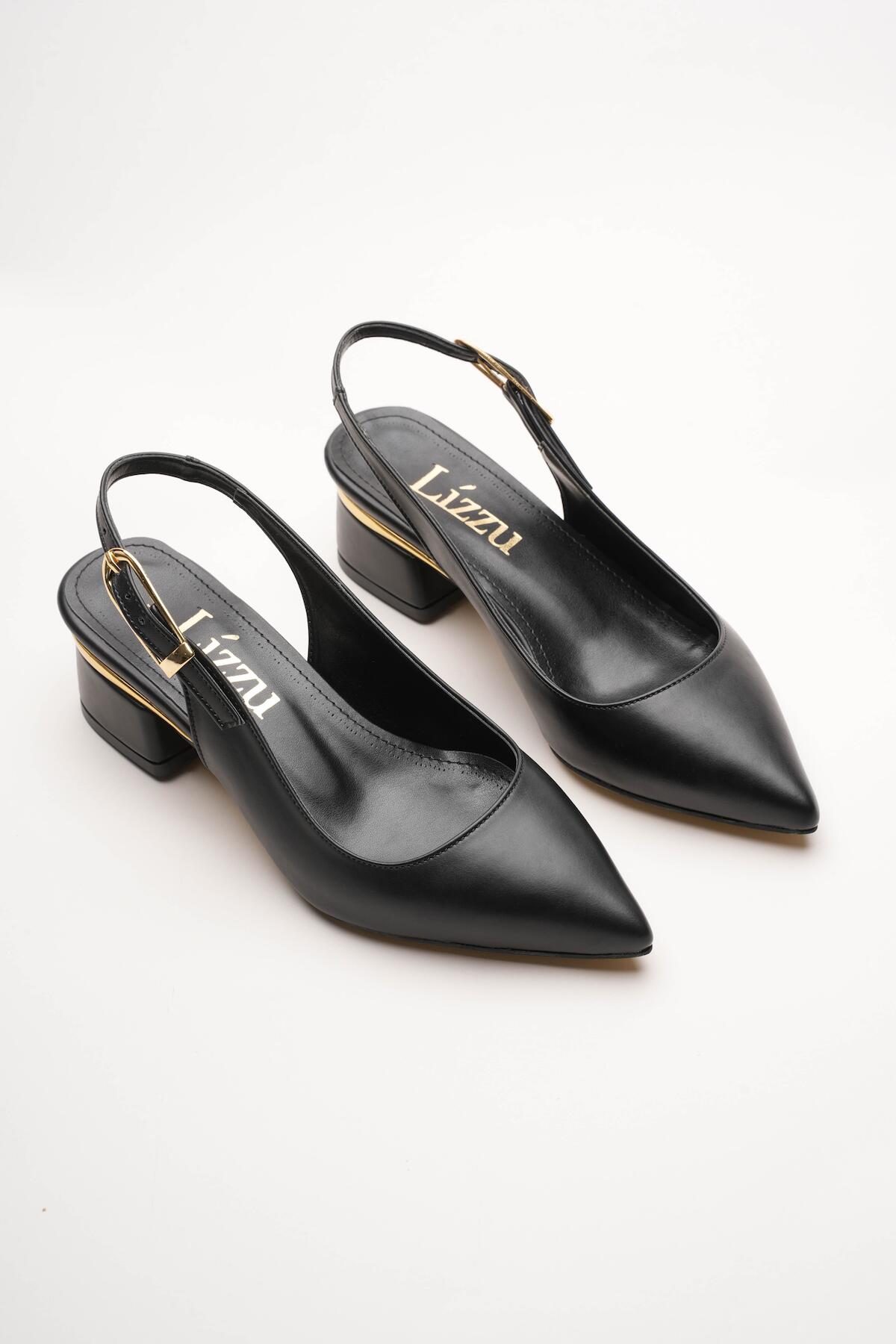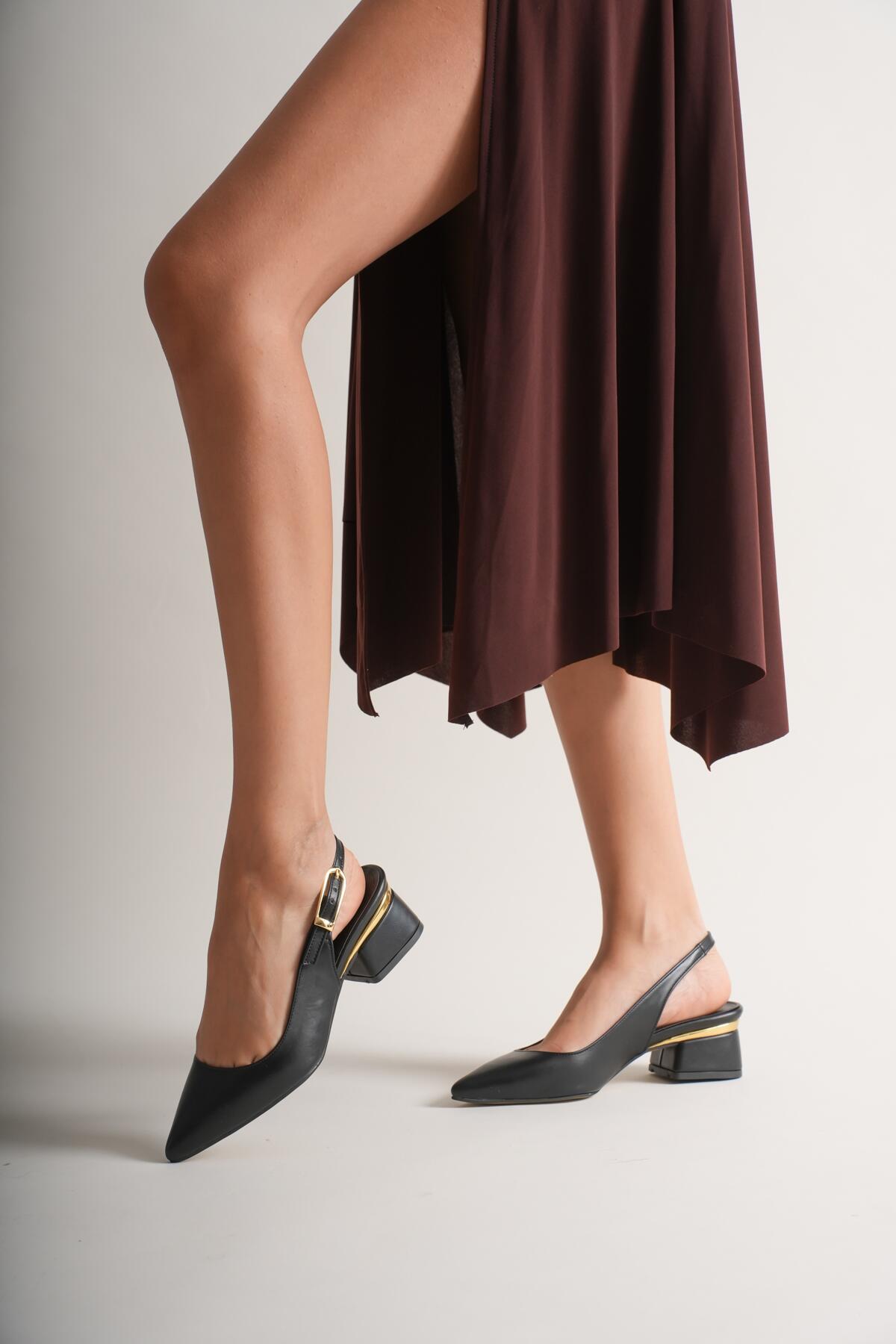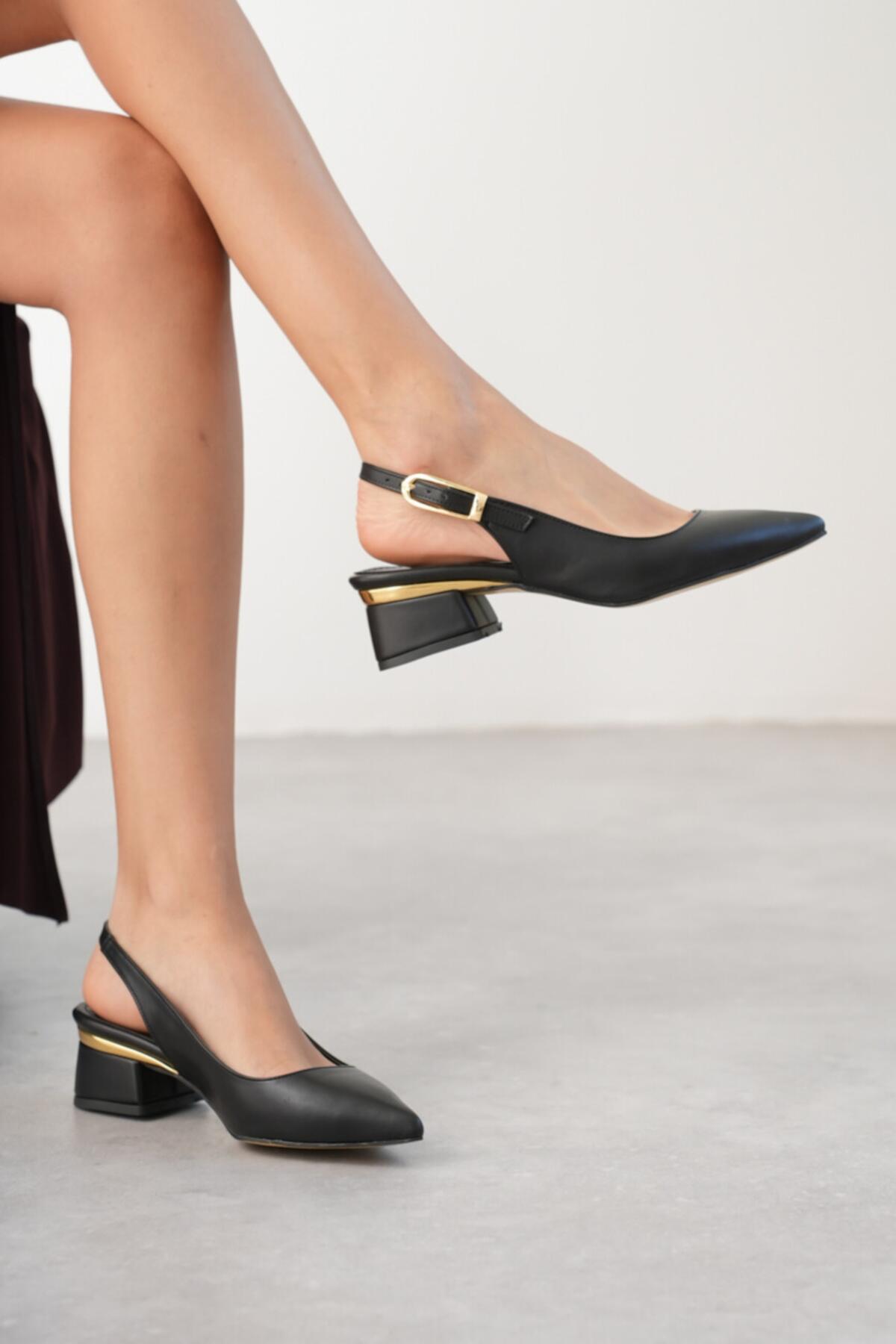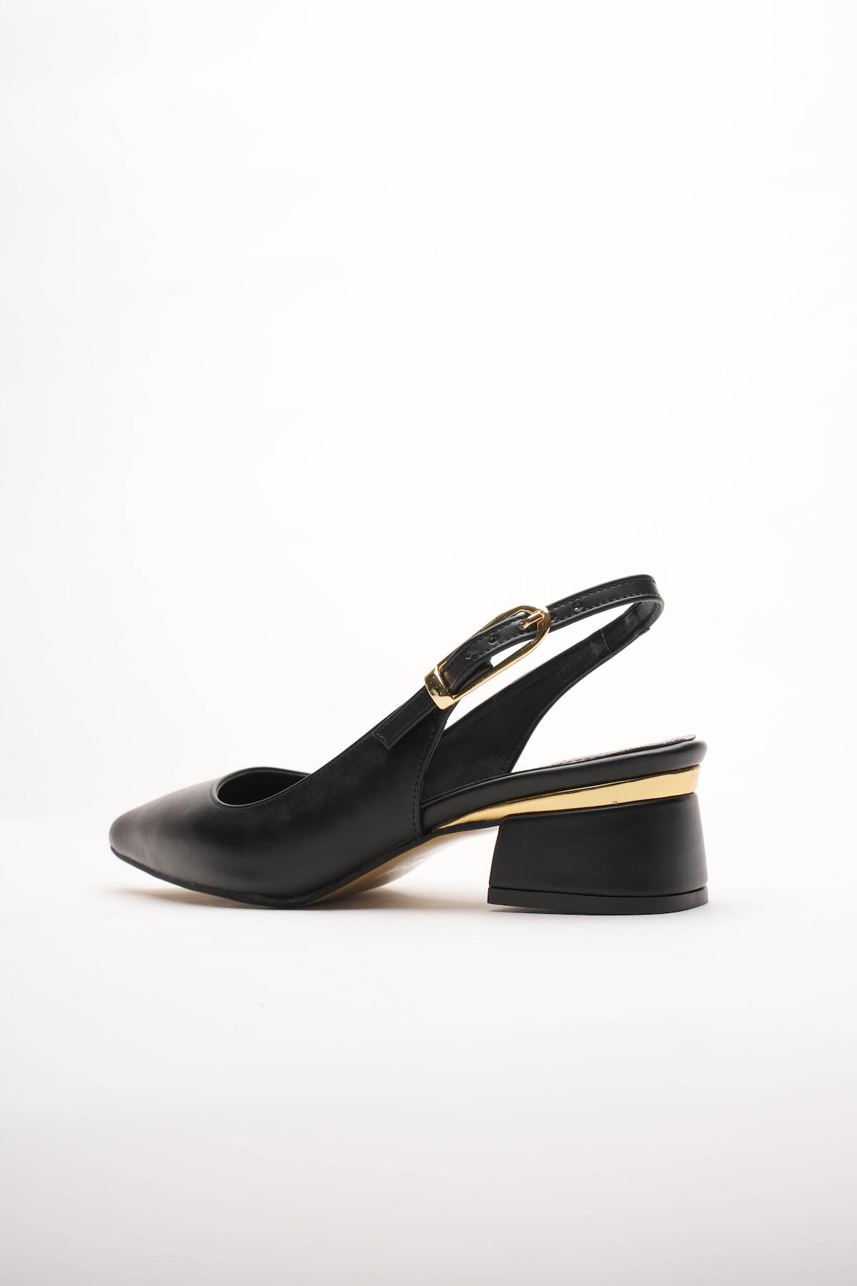 Kadın Gold Detaylı Topuklu Ayakkabı Vorina Siyah Cilt