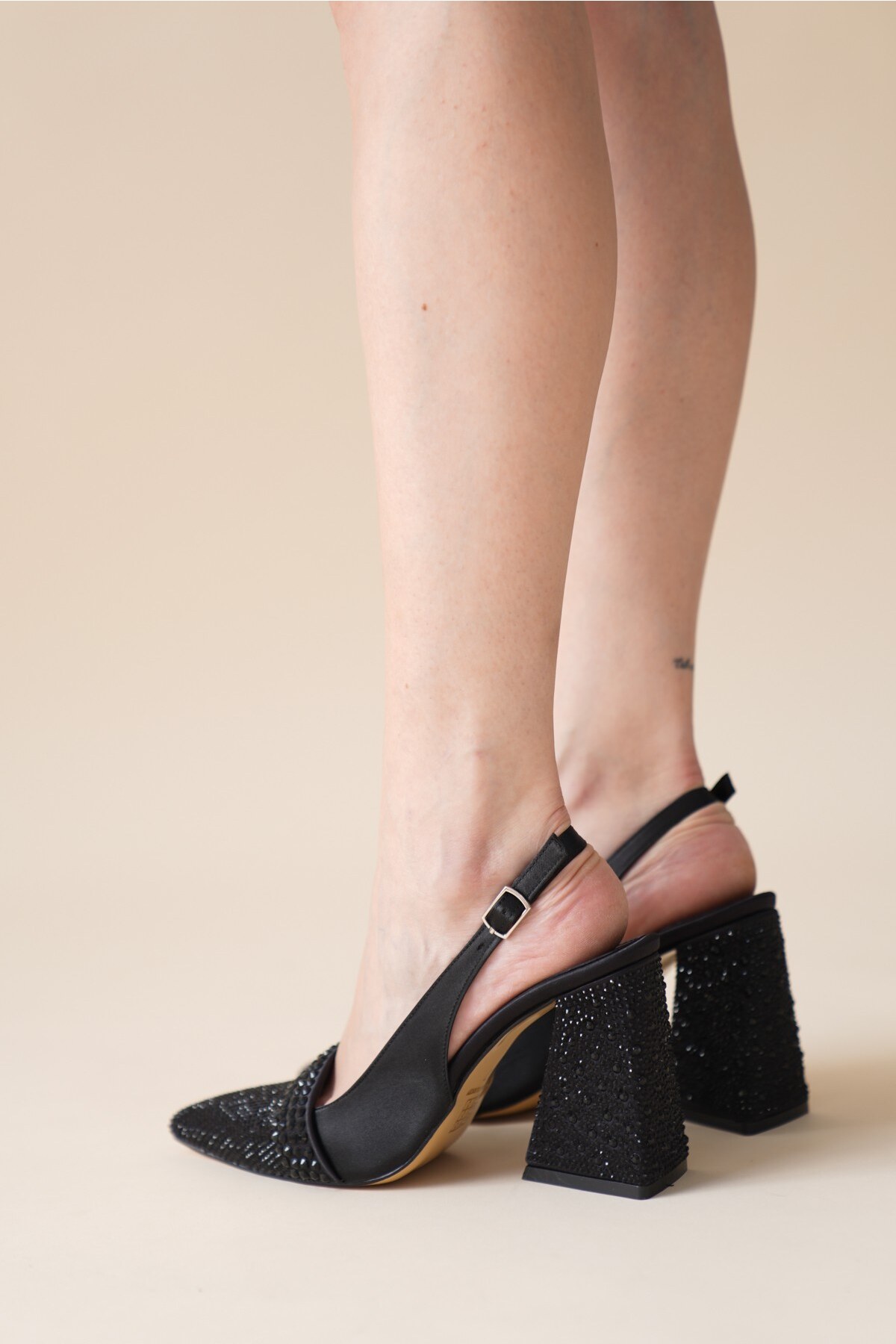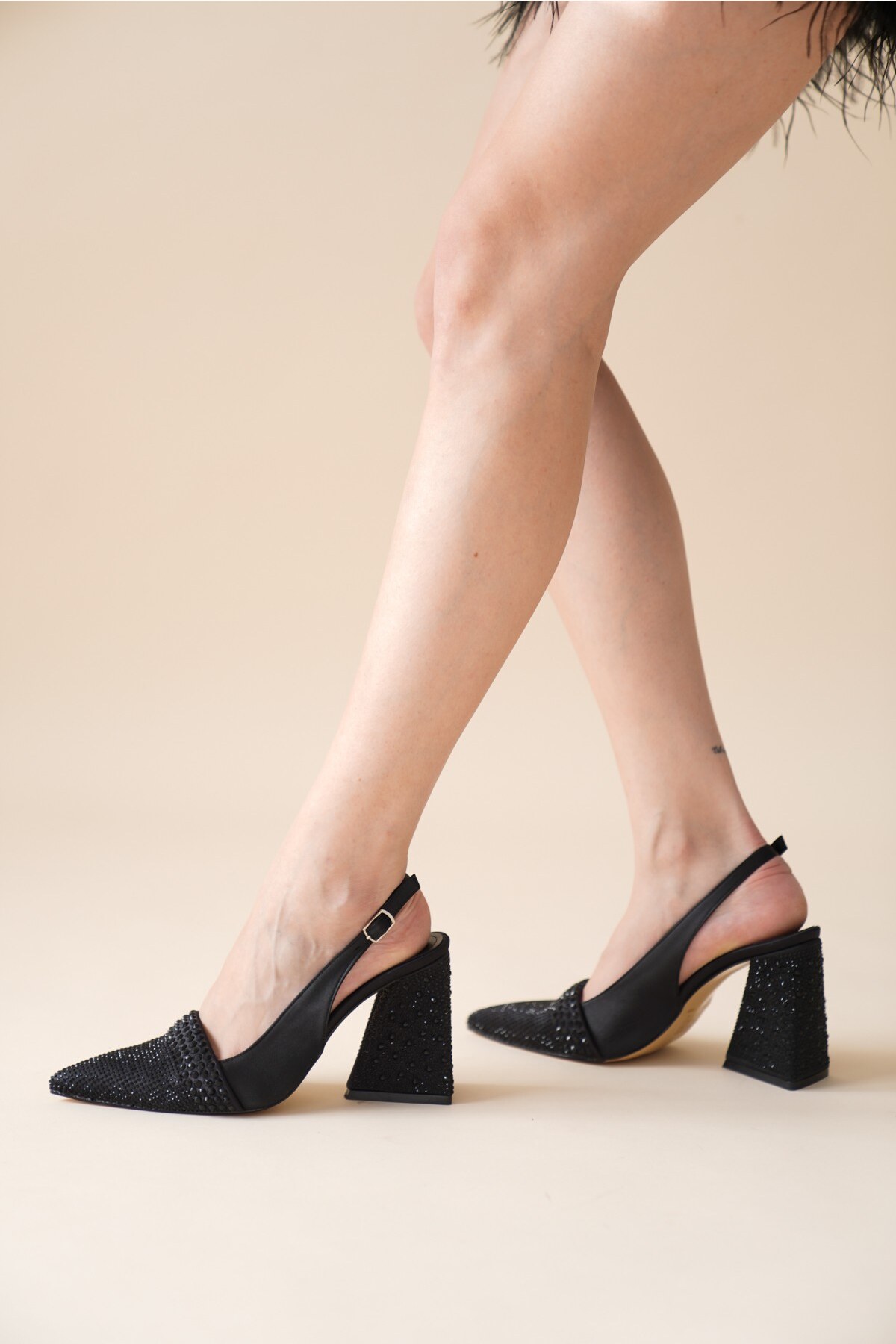 Siyah Taşlı Tasarım Topuklu Ayakkabı Riena Siyah