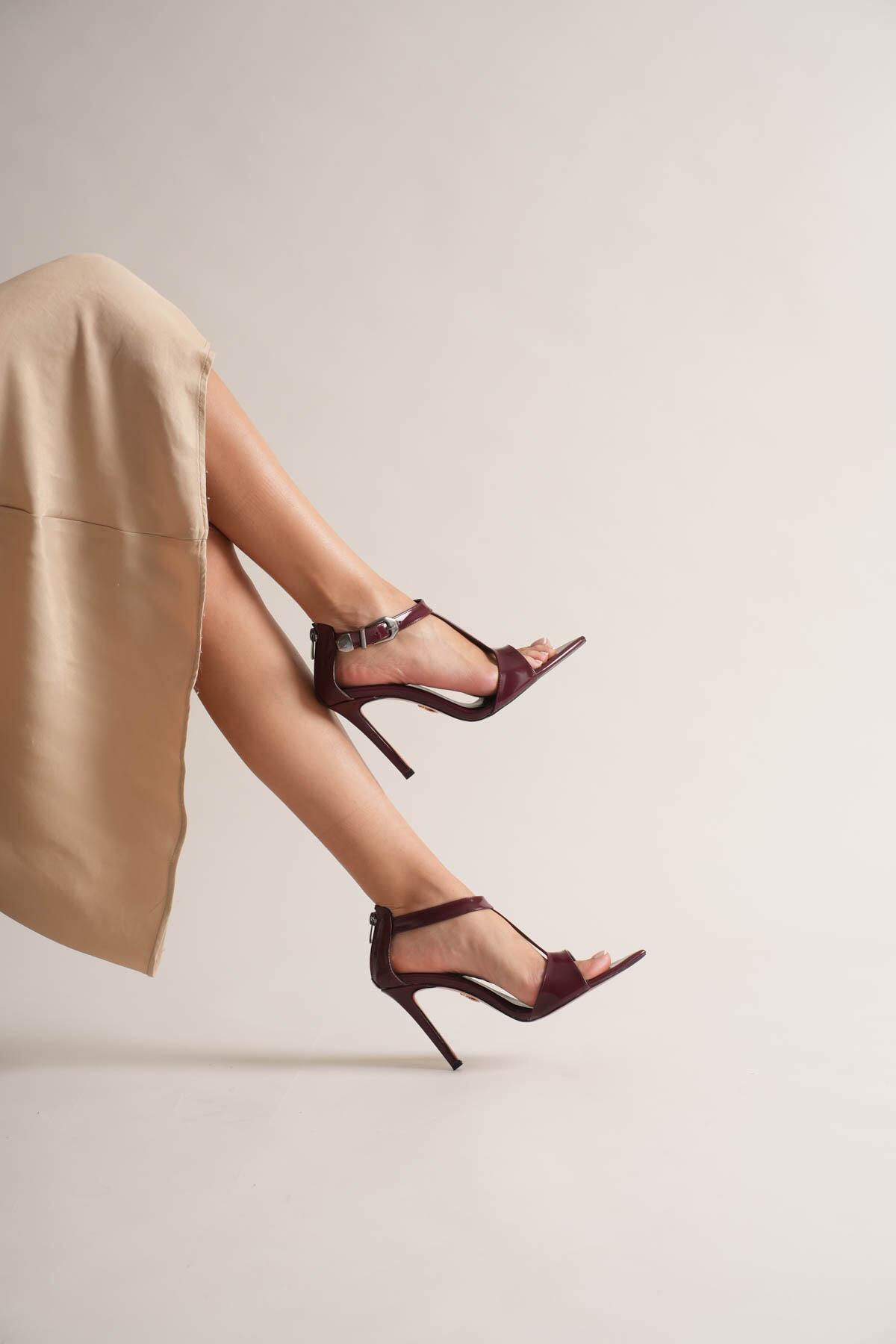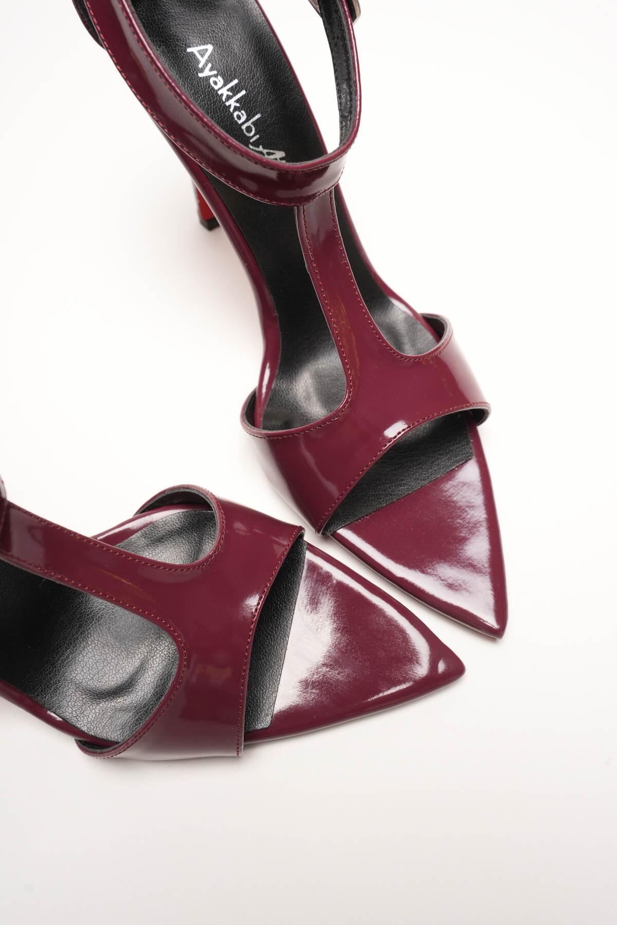 T-bantlı Toka Detaylı Sivri Burun İnce Topuklu Stiletto Ayakkabı Tories Bordo